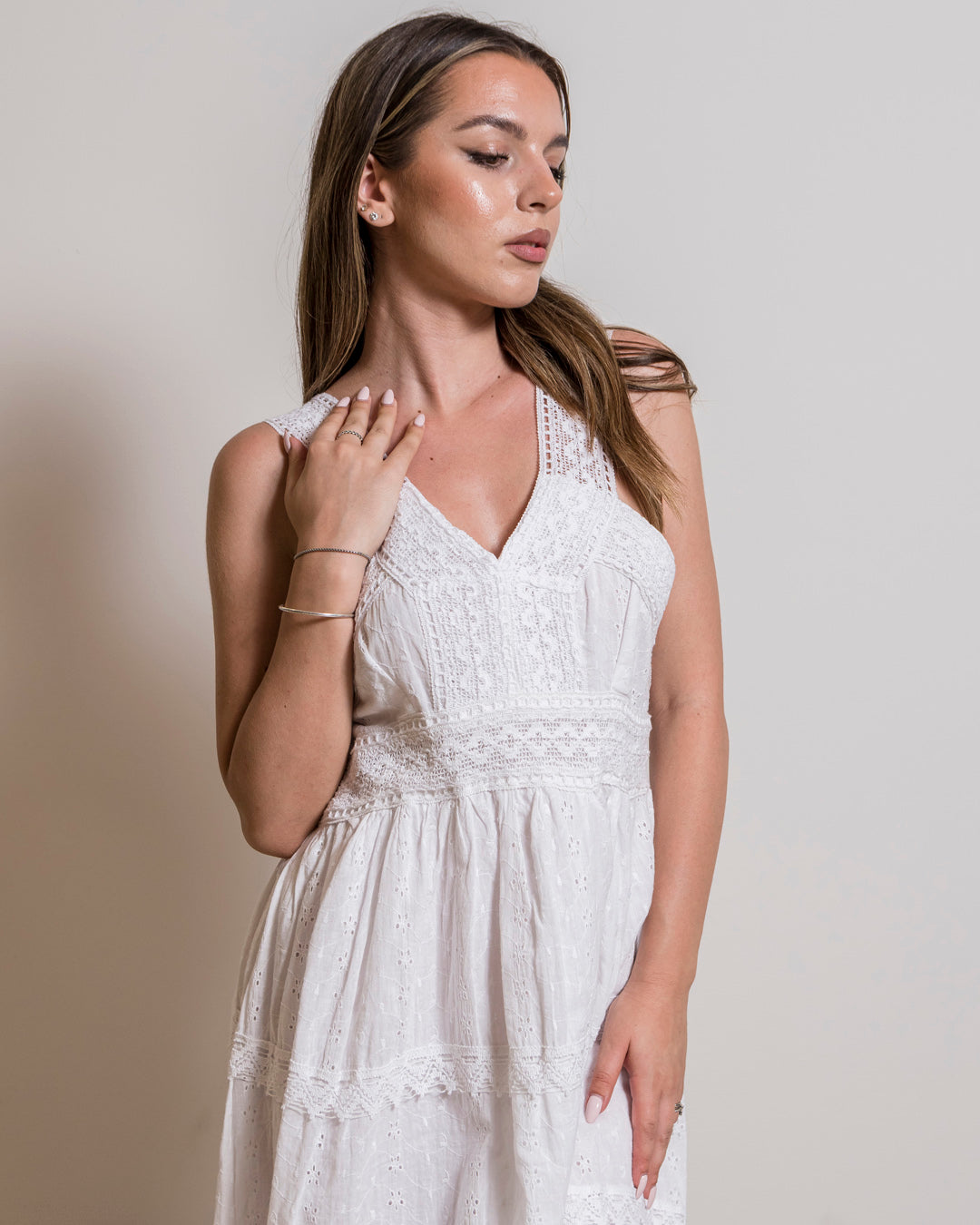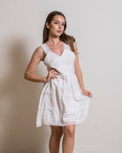 In cotone e pizzo sangallo, retro elasticizzato. Foderato al suo interno, non risulta trasparente. Veste fino a taglia 46/48 tessuto: 100% cotone