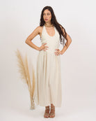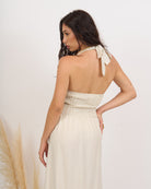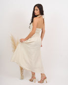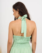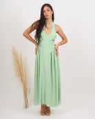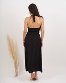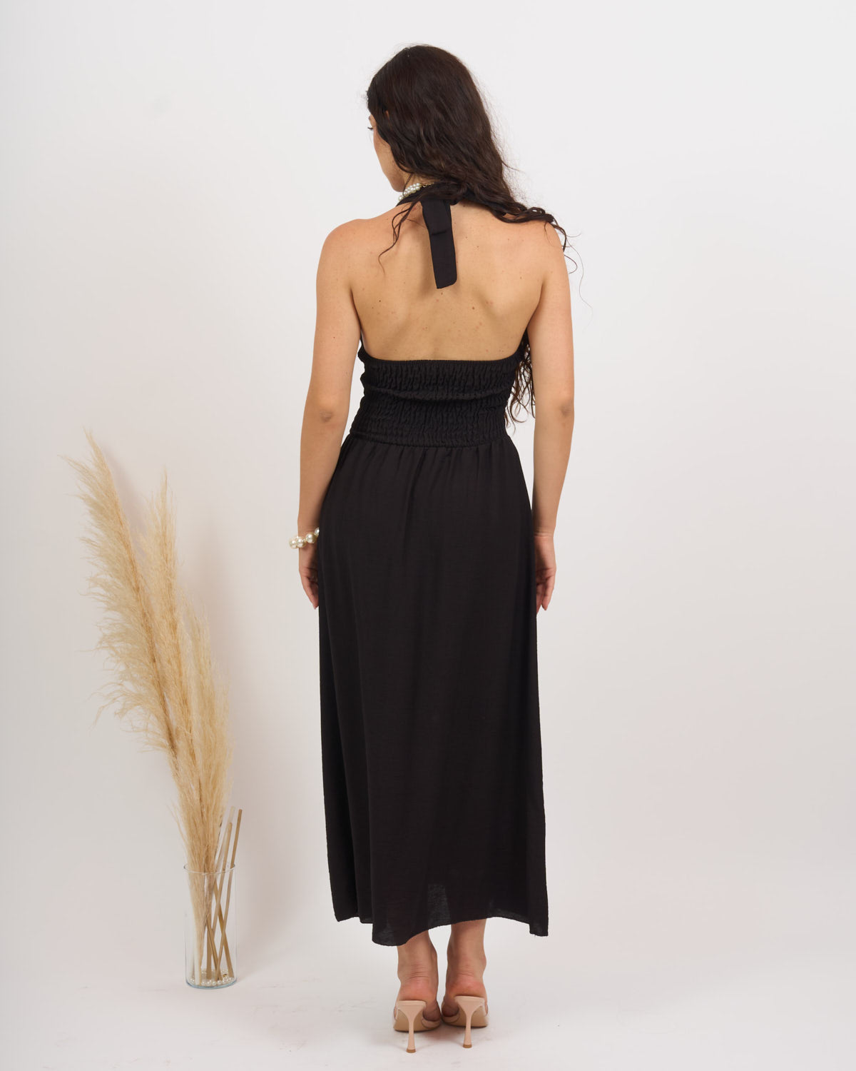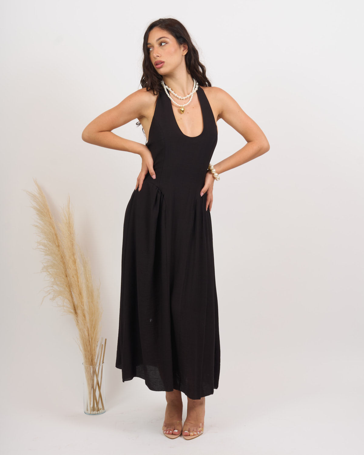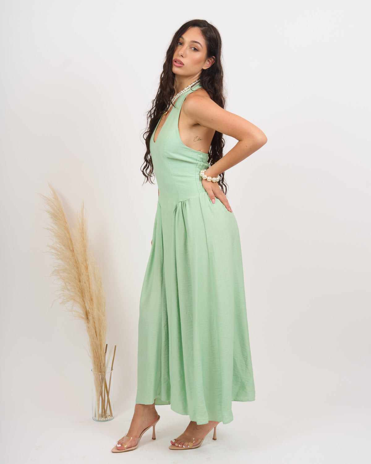 Abito con scollo all'americana, retro elasticizzato e taglio cucitura bustier.
