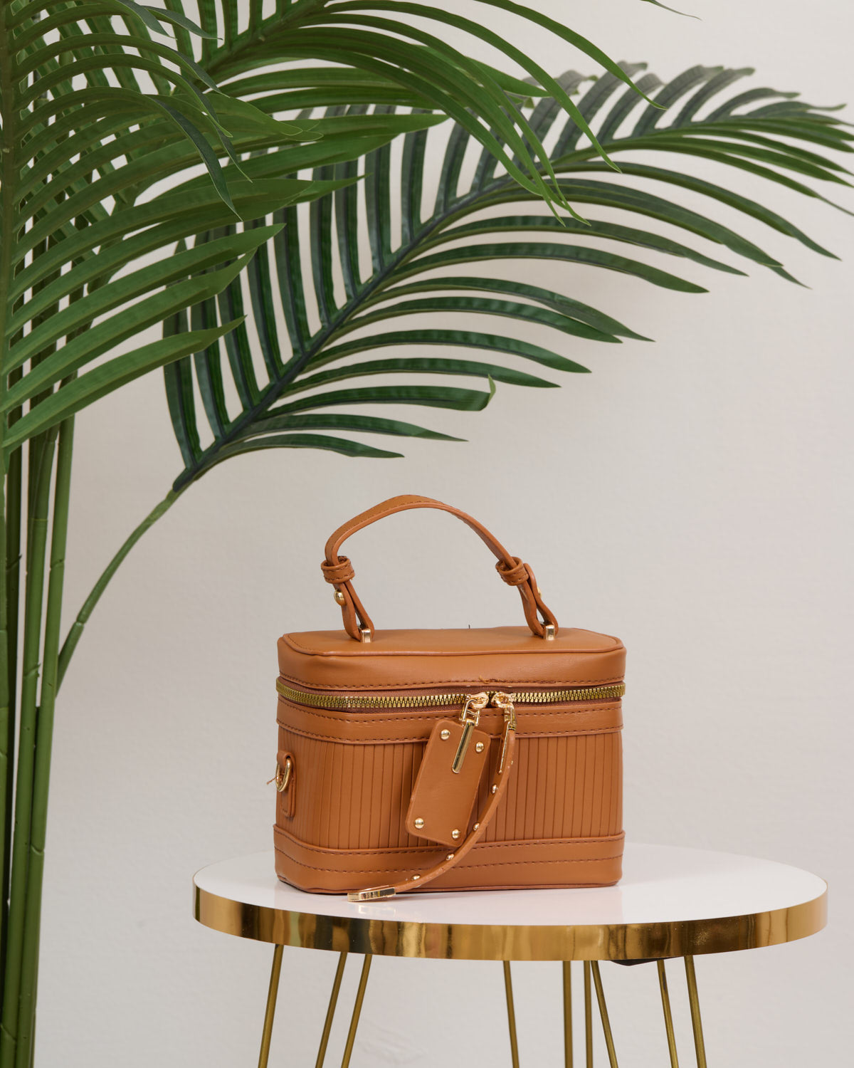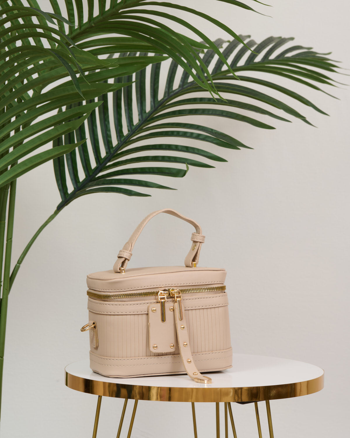 In ecopelle con tracolla a spalla inclusa, interno foderato.