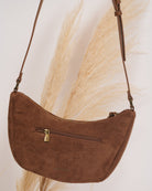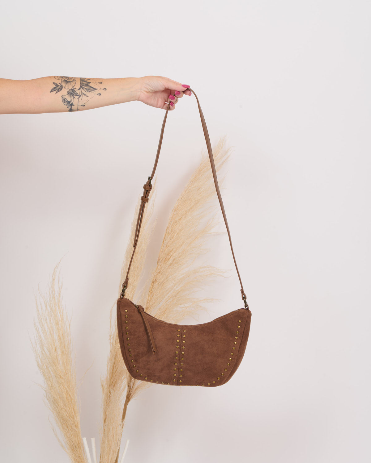 Borsa in morbida pelle scamosciata, dotata di chiusura con zip e tracolla regolabile per il massimo comfort. Dimensioni medie ideali per ogni occasione. Firmata Regina Scherker, un tocco di stile unico.