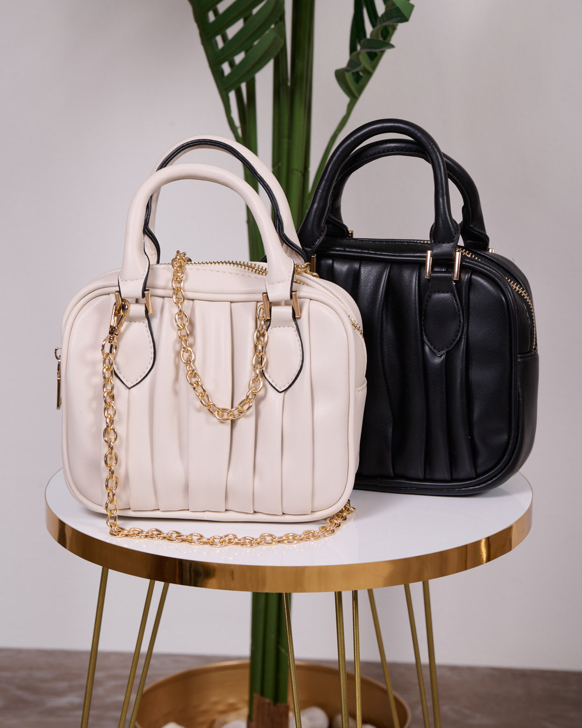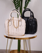 Borsa a mano in morbida ecopelle di qualità, inclusa tracolla a spalla in catena color oro.