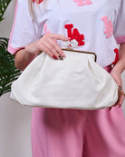 Borsa modello clutch di grandi dimensioni, dettagli color oro.