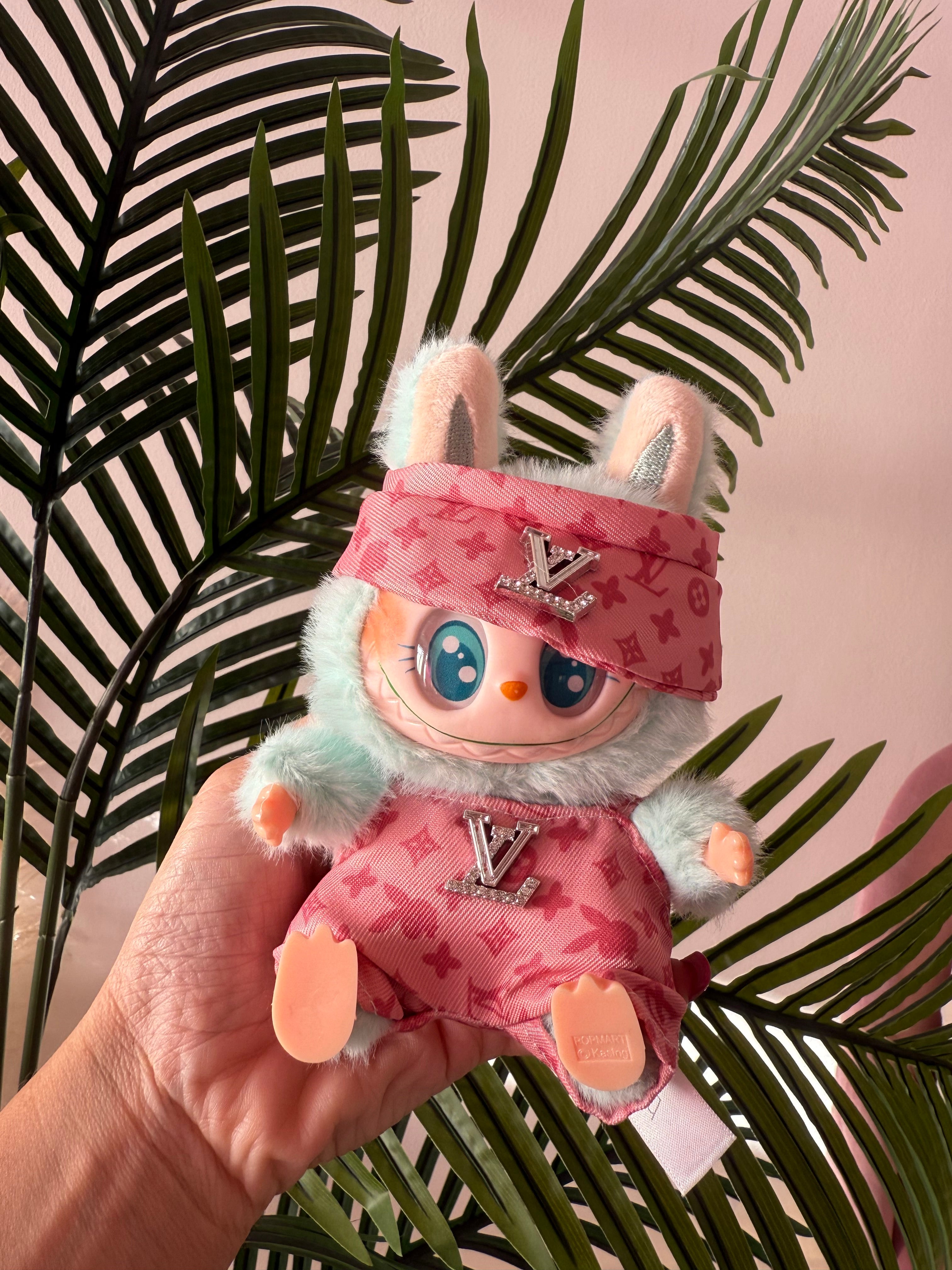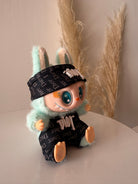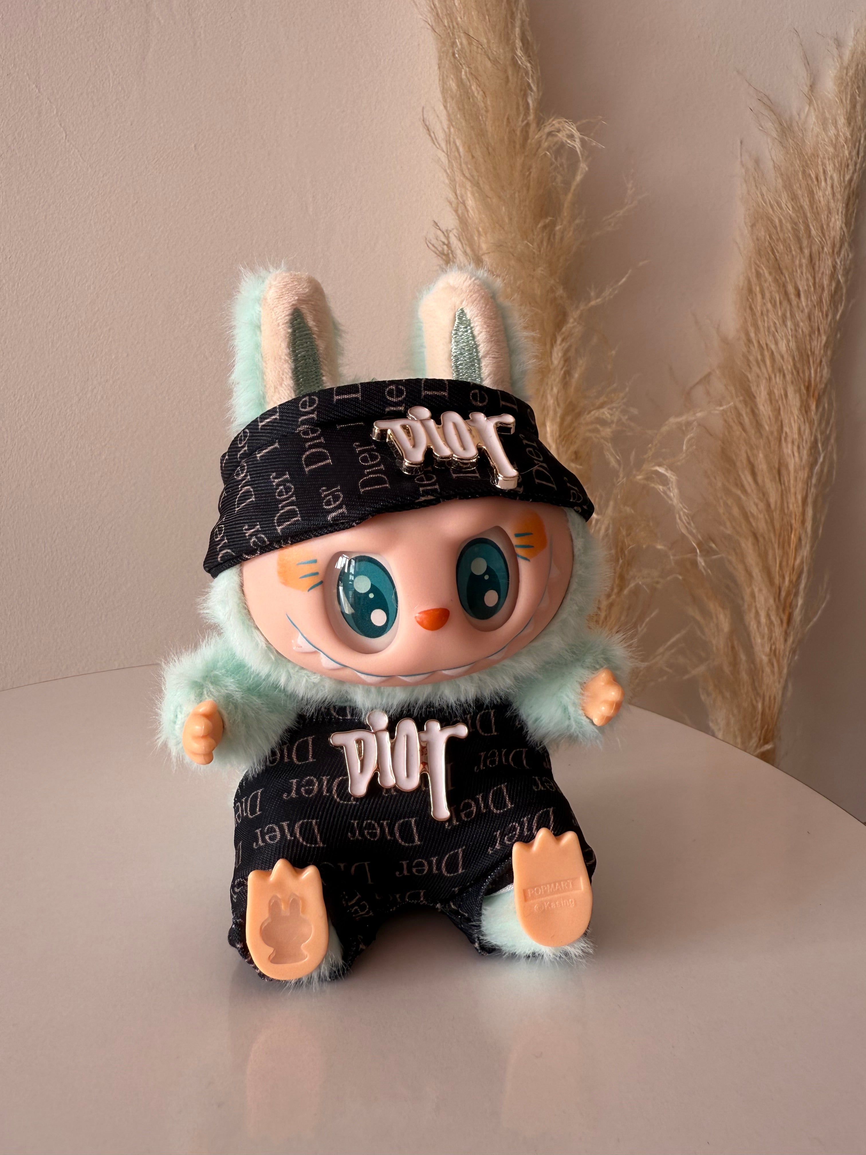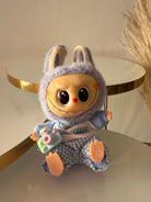 Labubu con vestitino e accessori. Dimensione circa 15 cm.