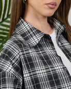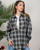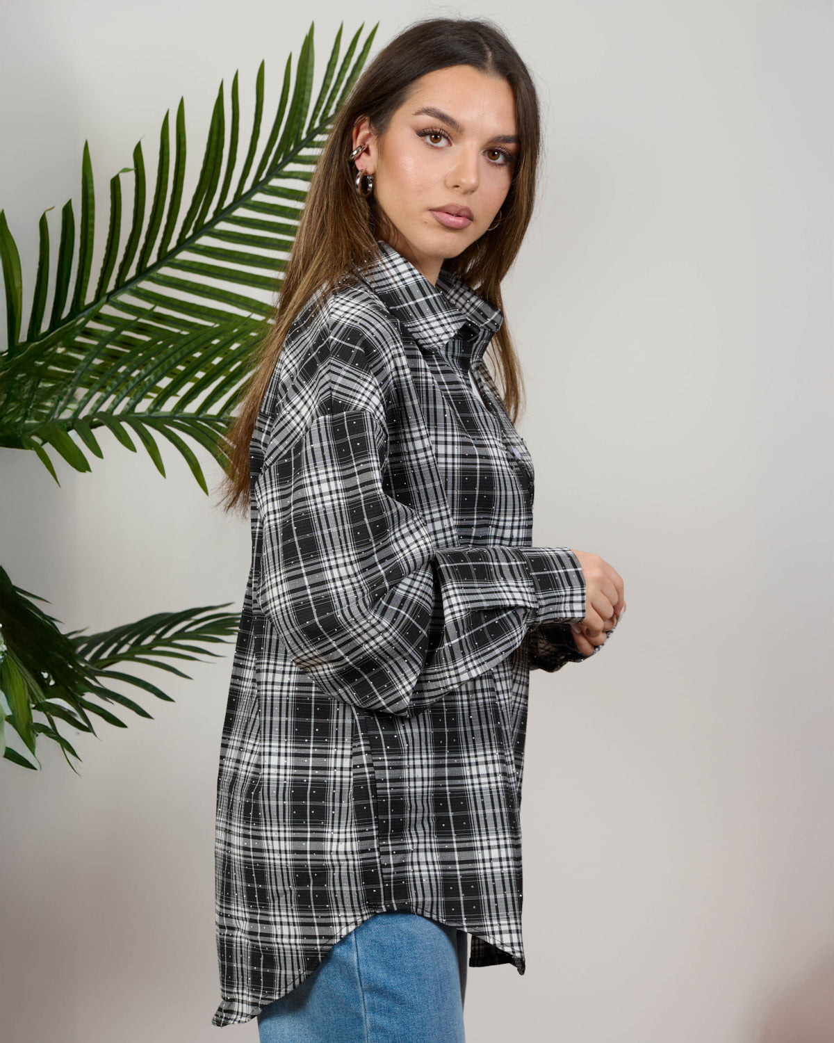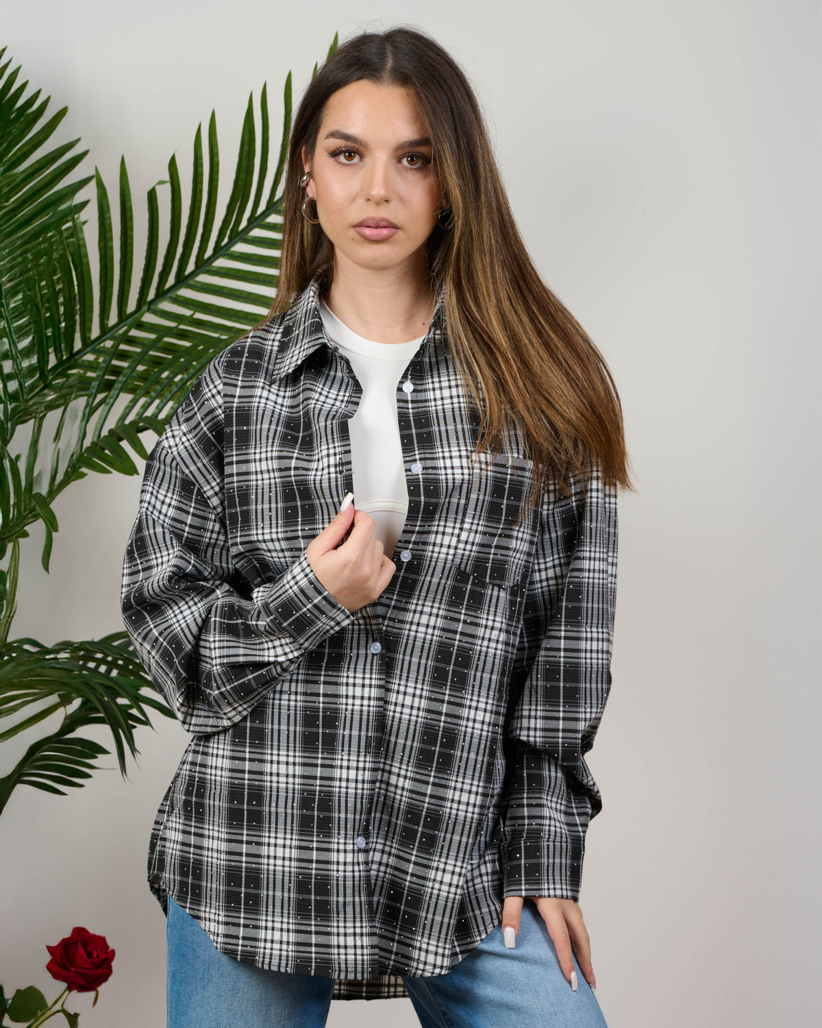 Camicia in fantasia scozzese con strass. Vestibilità non aderente, in taglia unica veste fino a tg 48