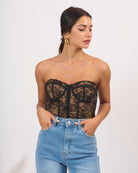 Fondo colore nude con pizzo, corpetto elasticizzato con coppe preformate.