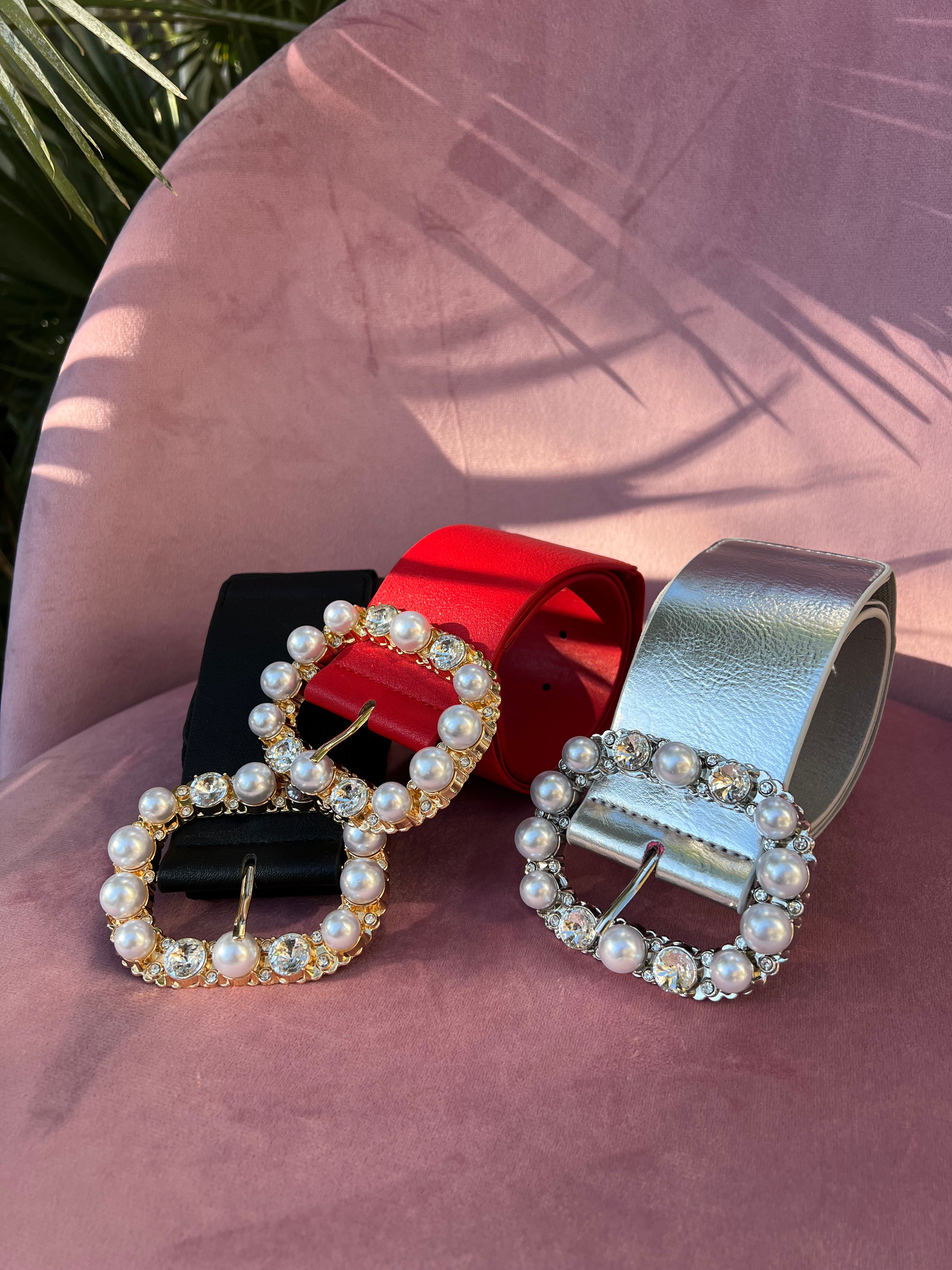Cinturone con fibbia, retro con molla elasticizzata per regolare grandezza.