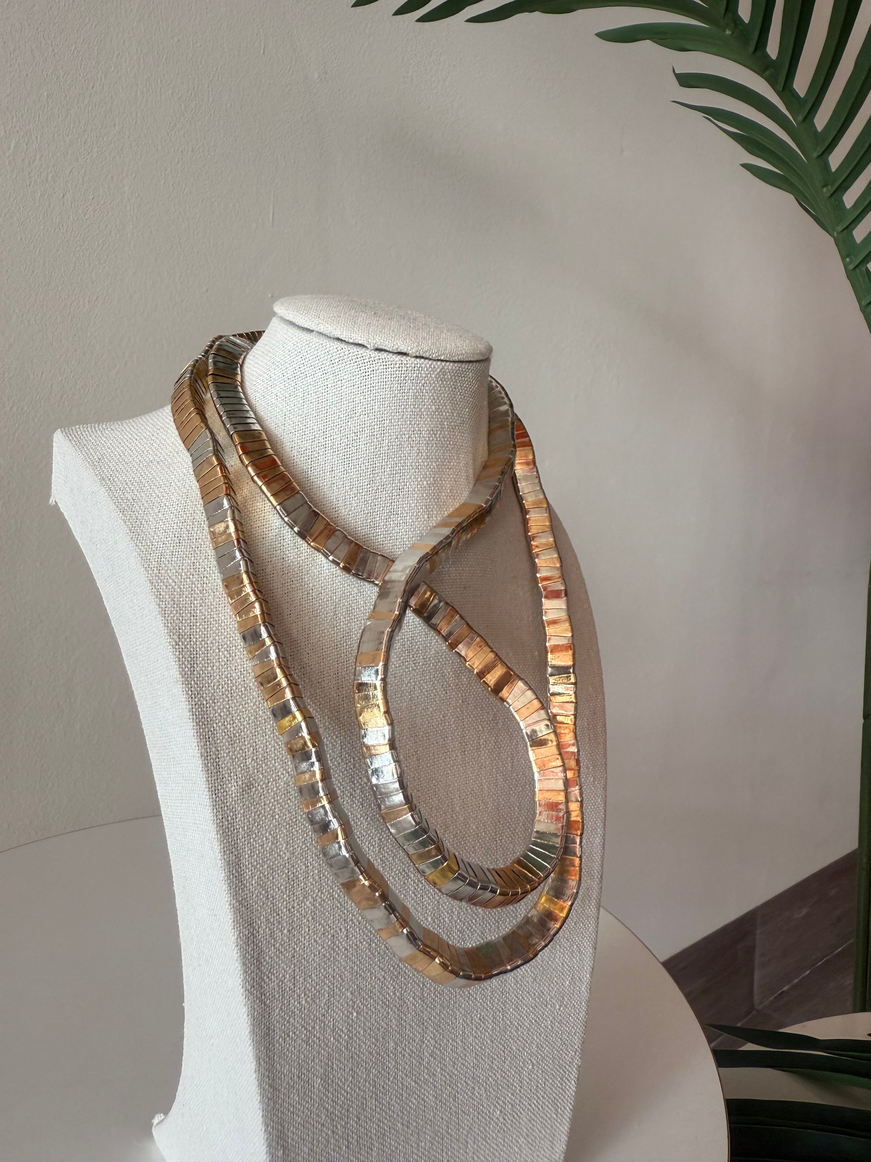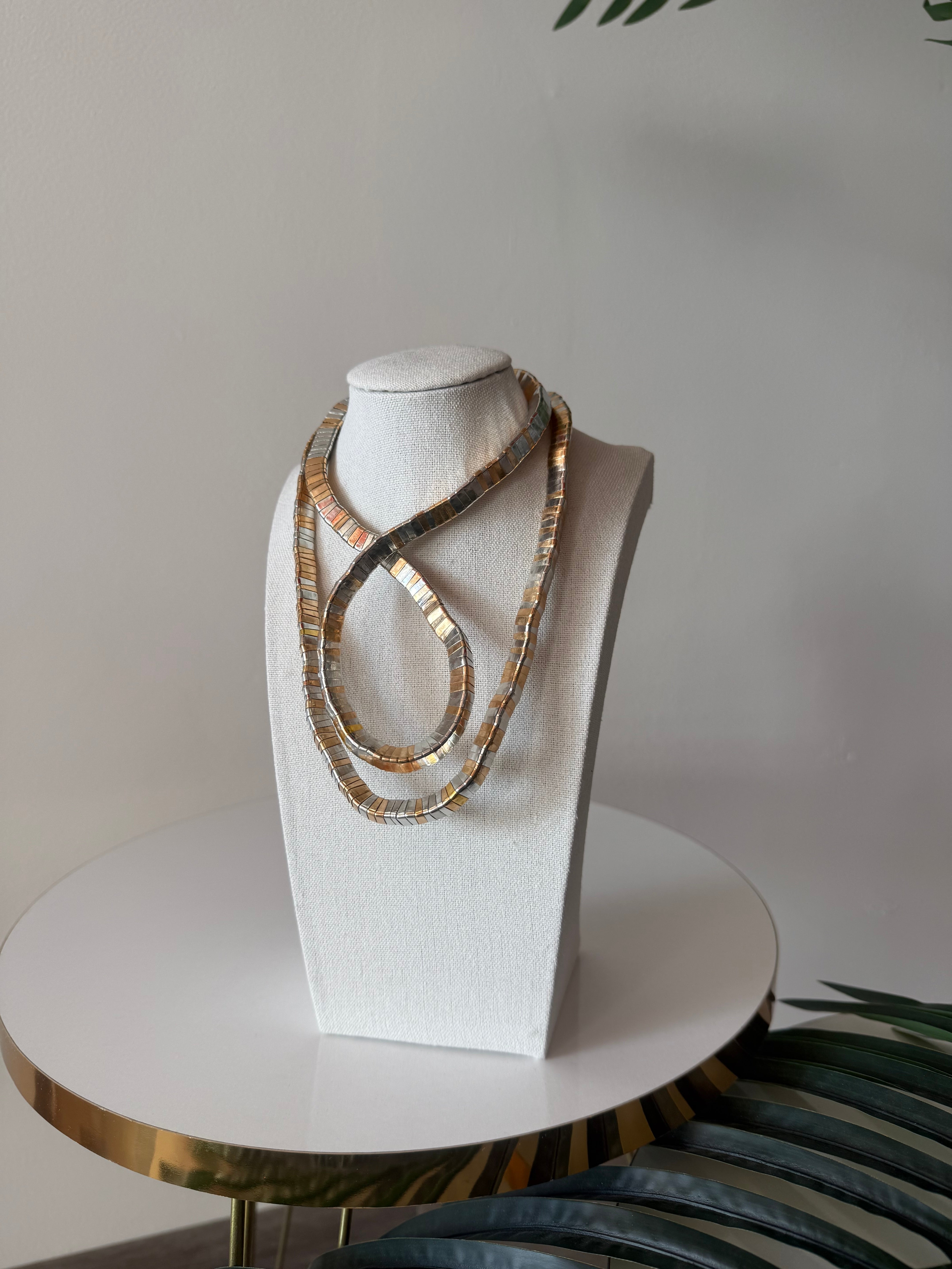 La Collana MilleModi è un vero capolavoro di design. Realizzata con materiali anallergici e flessibili, si adatta perfettamente al tuo stile e alla tua personalità. Grazie alla sua versatilità, puoi modellarla e manipolarla a tuo piacimento, creando ogni volta un nuovo look unico e originale.