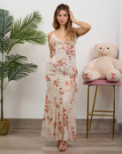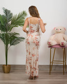 Coordinato di velo foderato composto da gonnellone alta vita con elastico e top con bretelline regolabili.