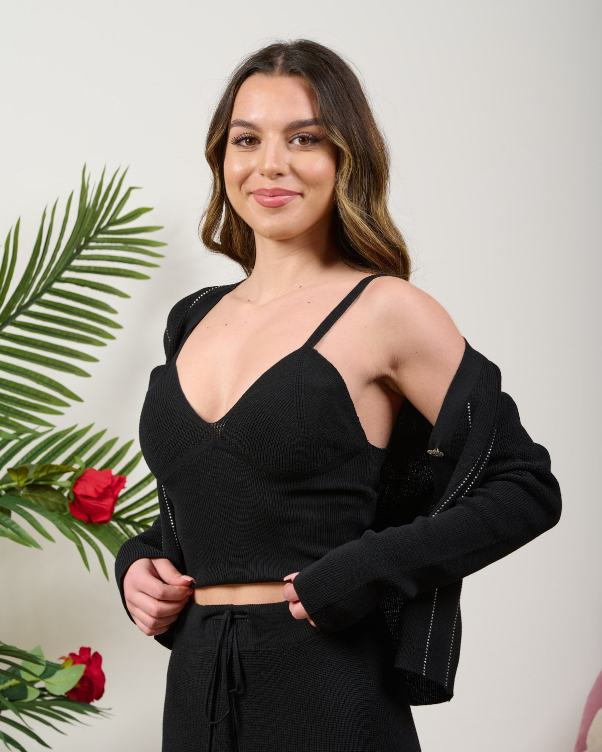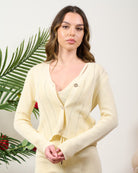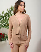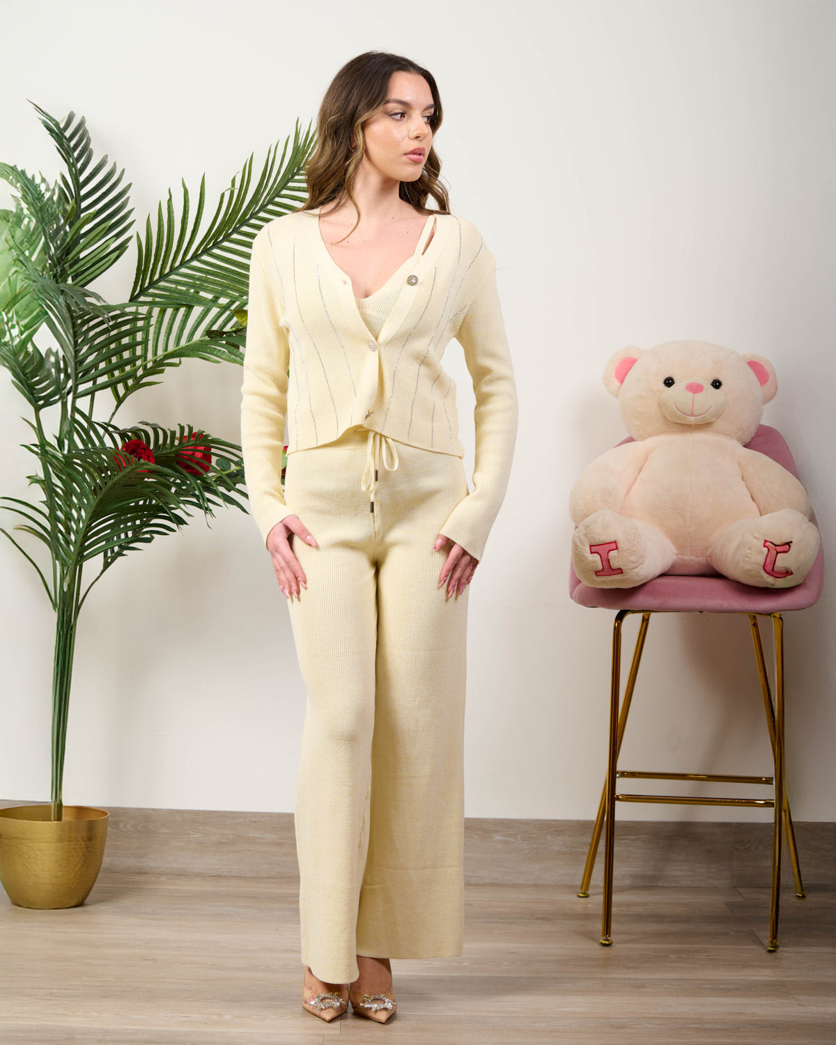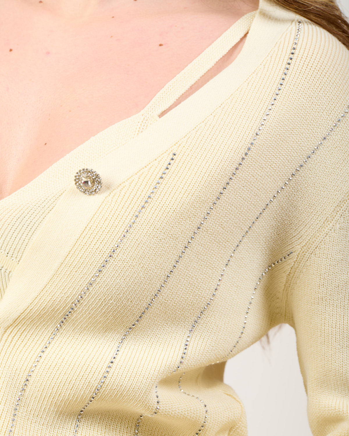 Cardigan con bottoni gioiello e top. Tessuto filo a costine.