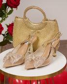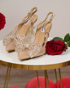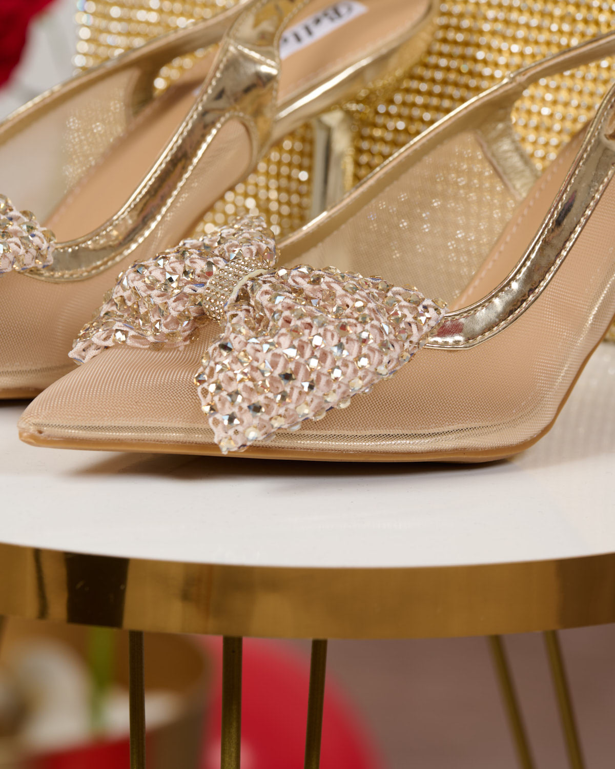 Slingback con parte anteriore trasparente/nude con fiocco in tessuto e strass.