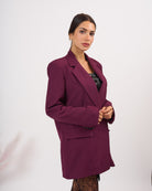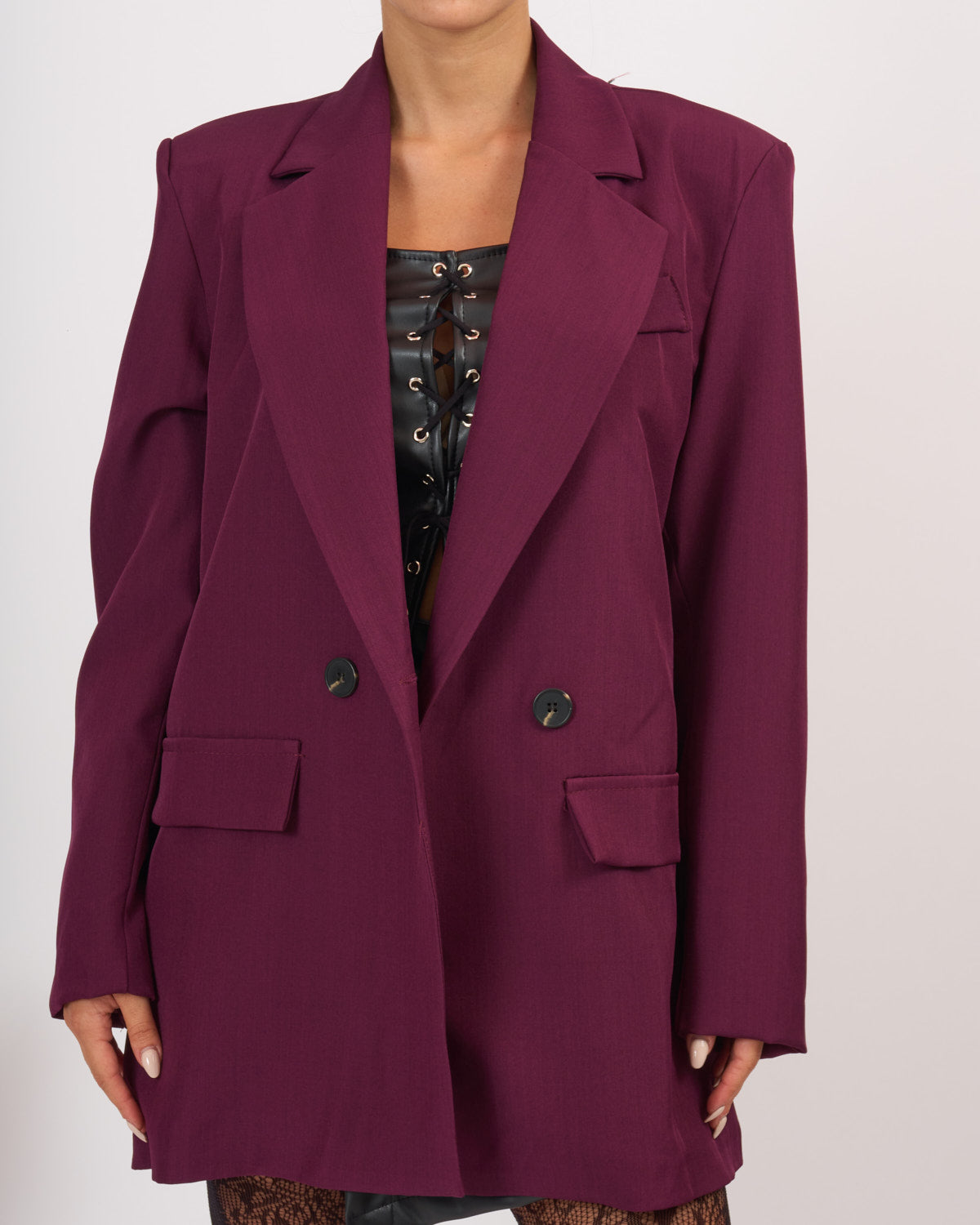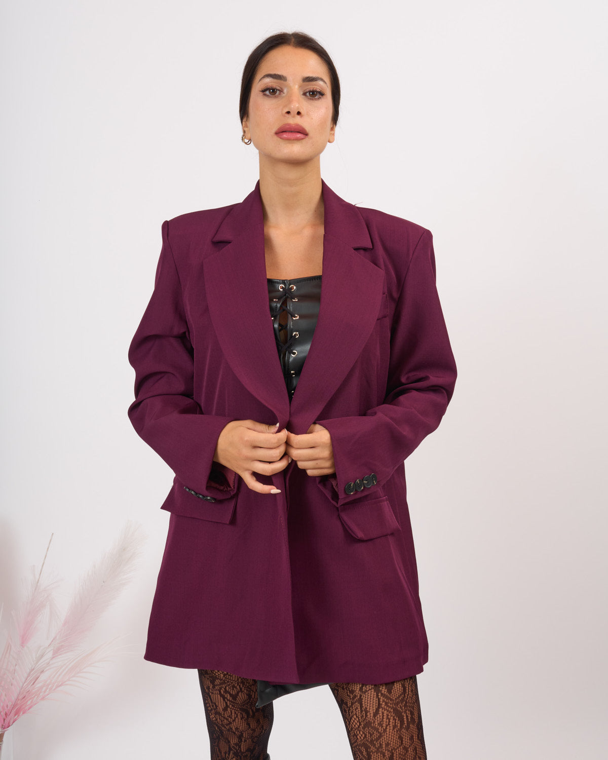 Blazer modello oversize con interno foderato con spalline e finte tasche a pattina sul davanti.