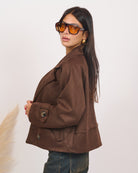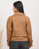 Giacca sfoderato modello chiodo in morbido eco camoscio.