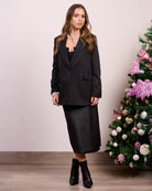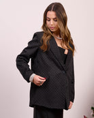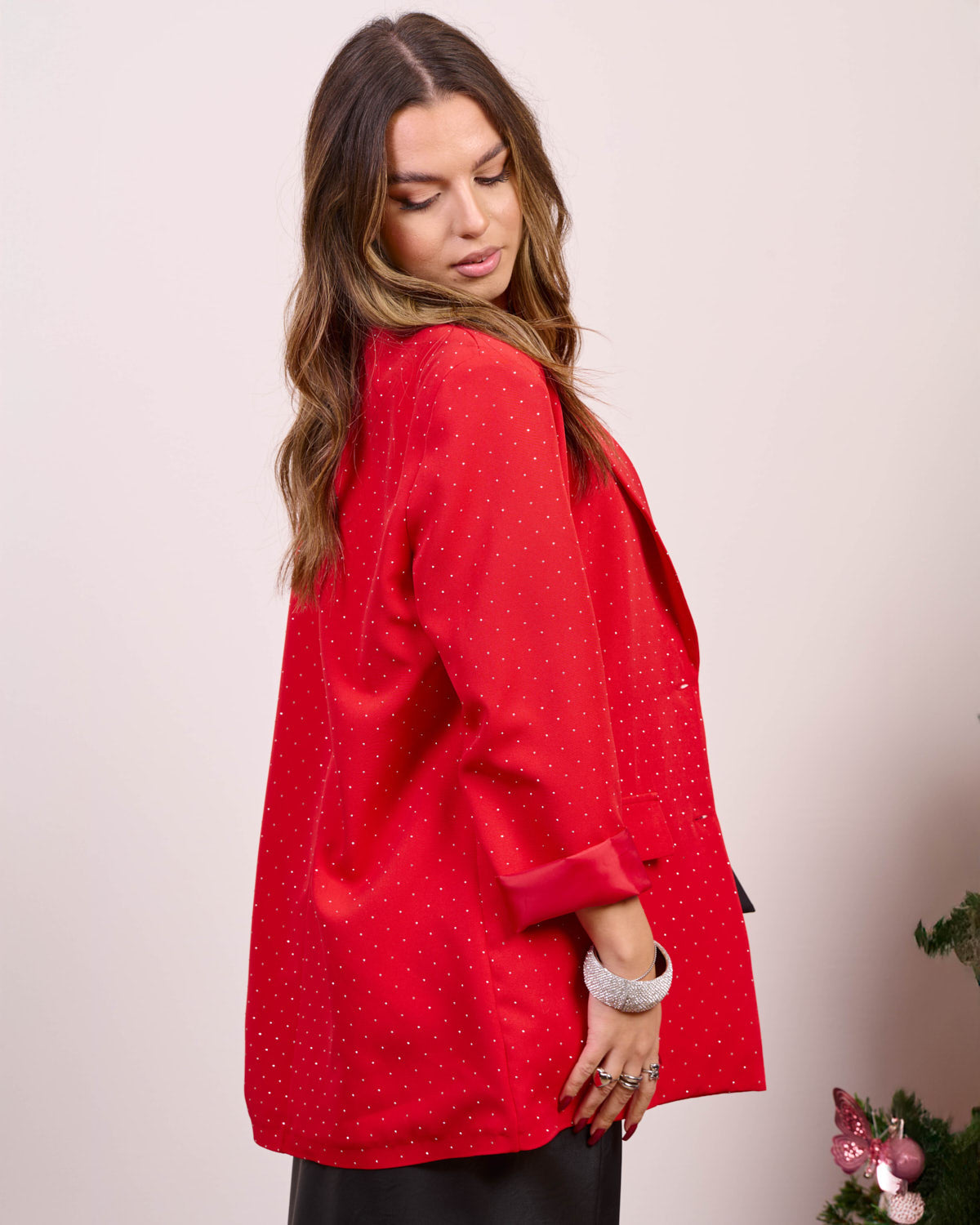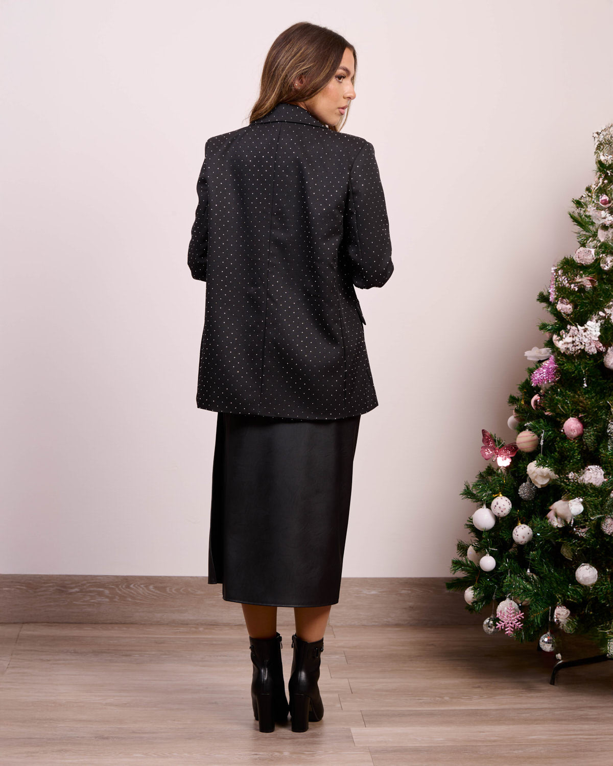 Modello oversize con brillantini, tasche finte a pattina ed interno foderato.