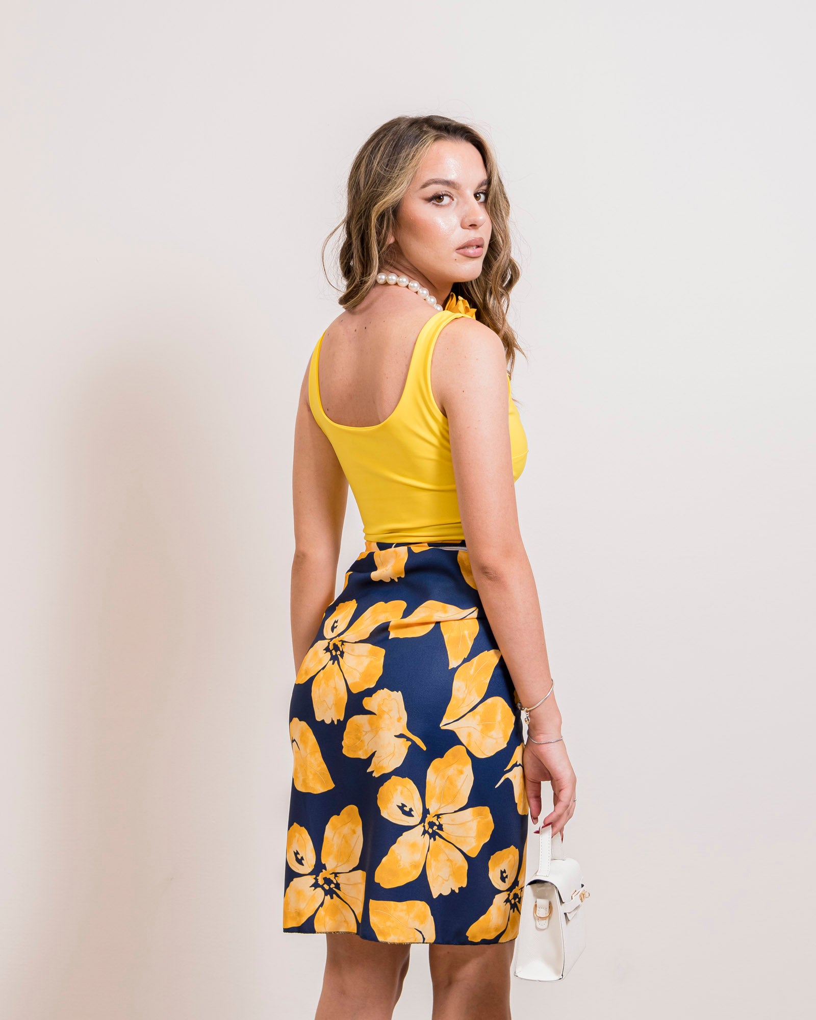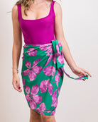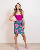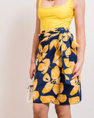 Gonna stampata modello pareo, lunghezza al ginocchio e/o un pò oltre. Veste fino a taglia 46/48 contenuta.