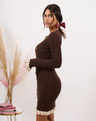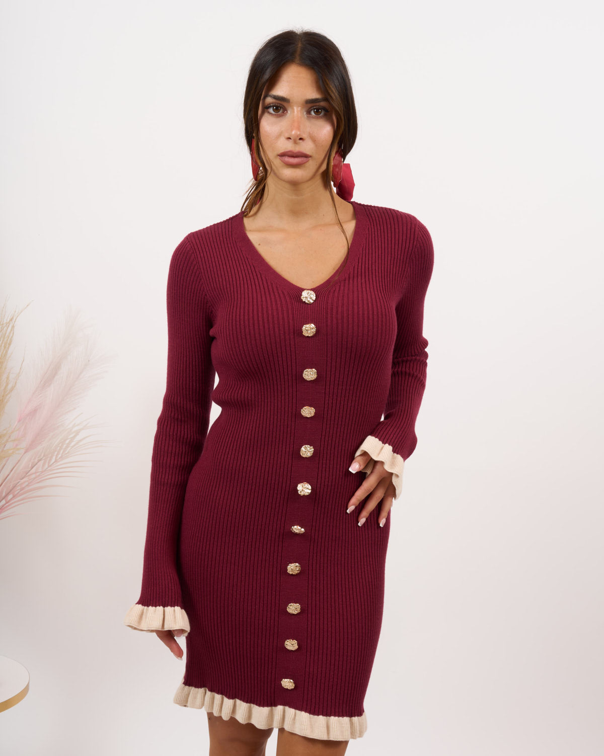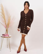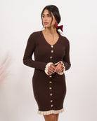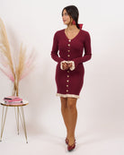 Abito in lana rasata elasticizzata a costine con finti bottoncini.