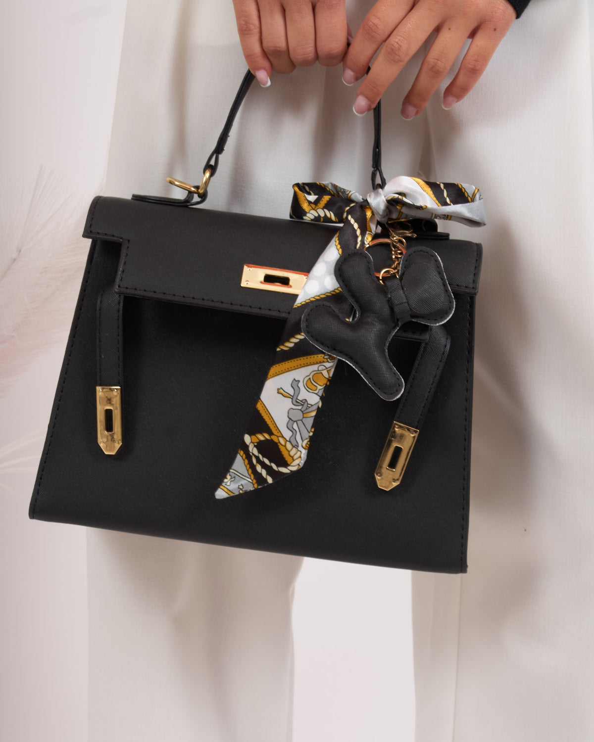 In simil pelle, dimensione media. Foulard e ciondolo incluso.