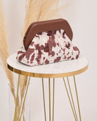 Borsa a mano fantasia muccata con manico rigido e tracolla a catena