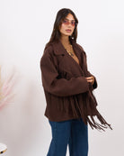 Giacca cappotto con frange, caldo al tatto. Modello oversize veste tutte le taglie fino a 50.