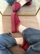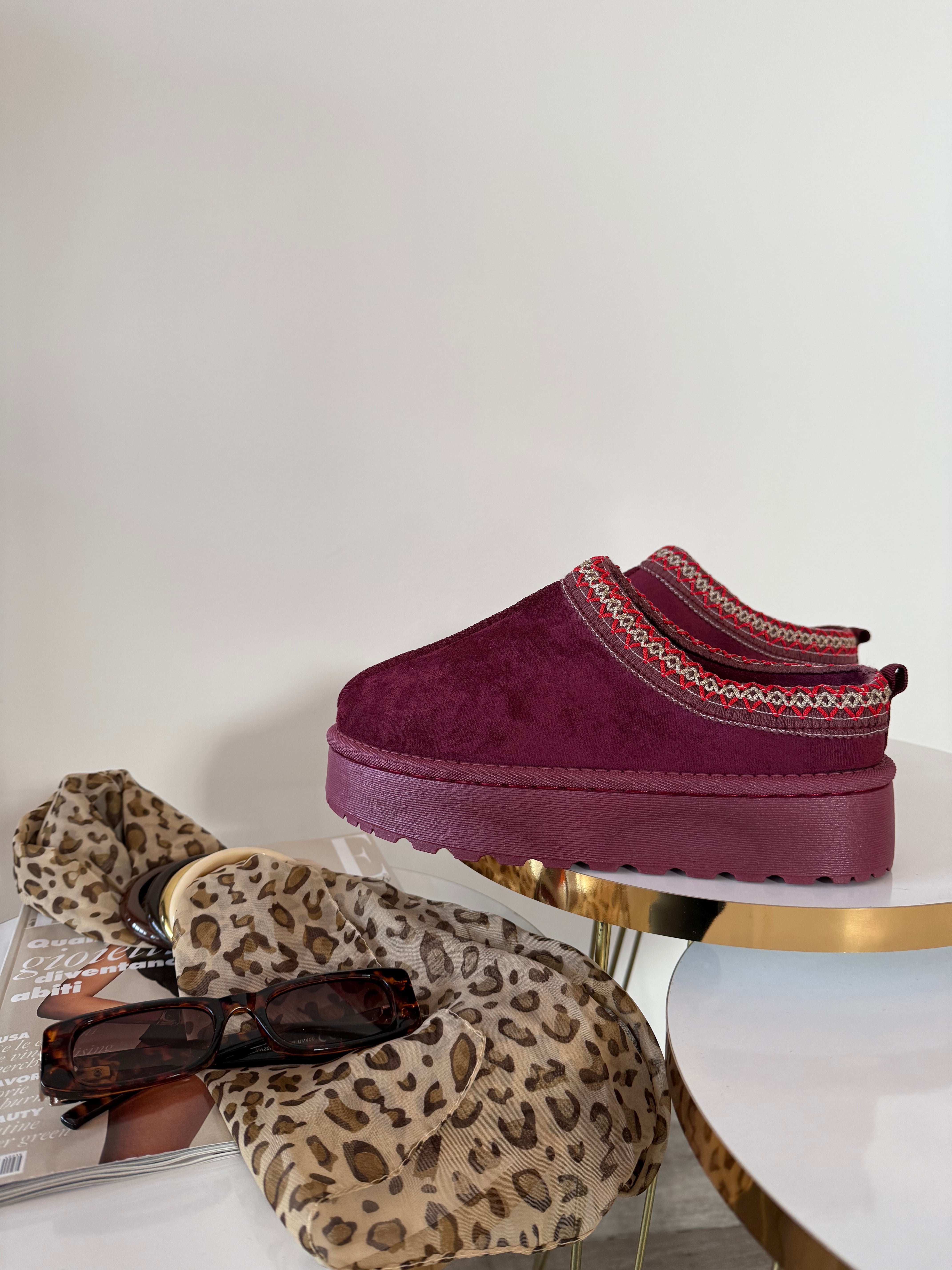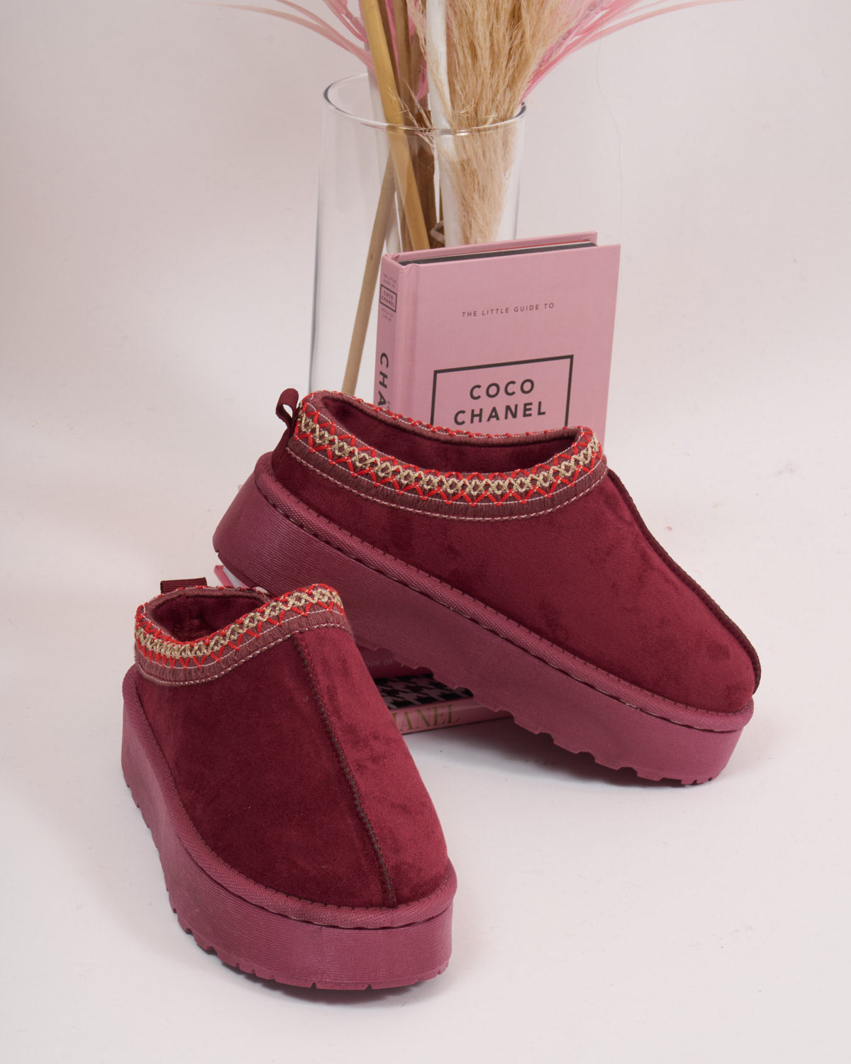 Ciabatta per esterno con tomaia in eco camoscio, interno termico in eco pelliccia.