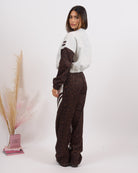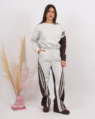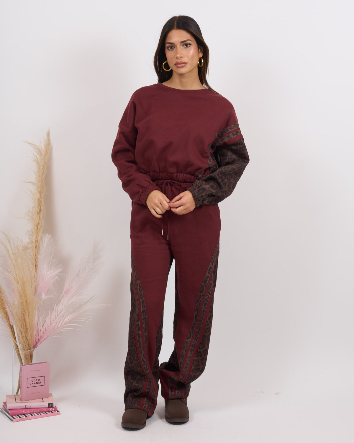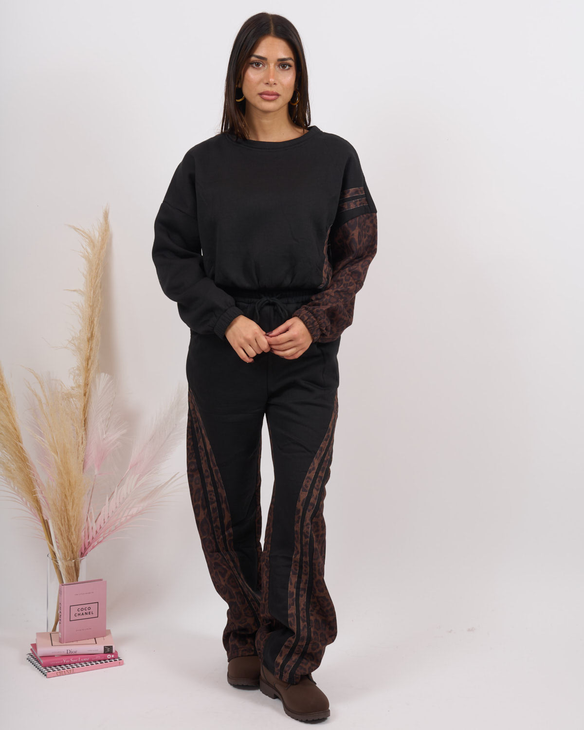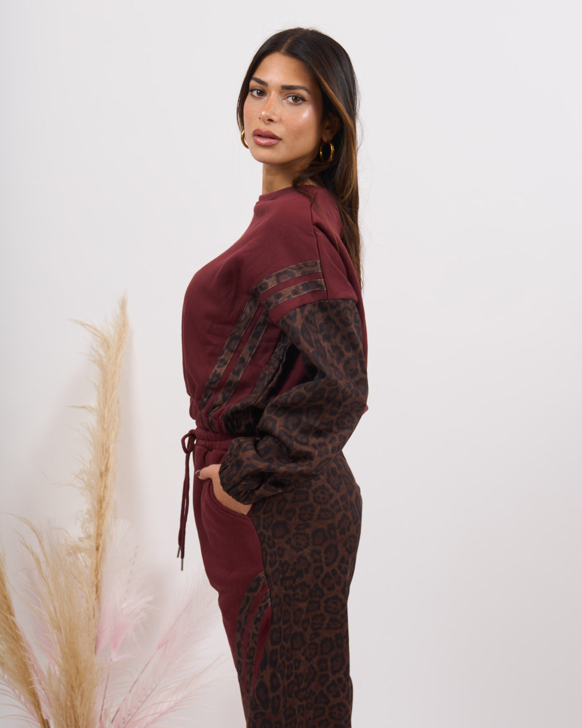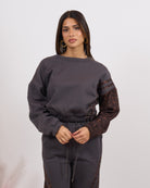 Coordinato composto da felpa leggermente cropped con elastico, pantalone modello balloon alta vita con elastico e lacci, tasche a filetto.