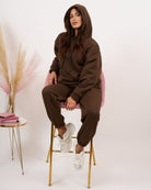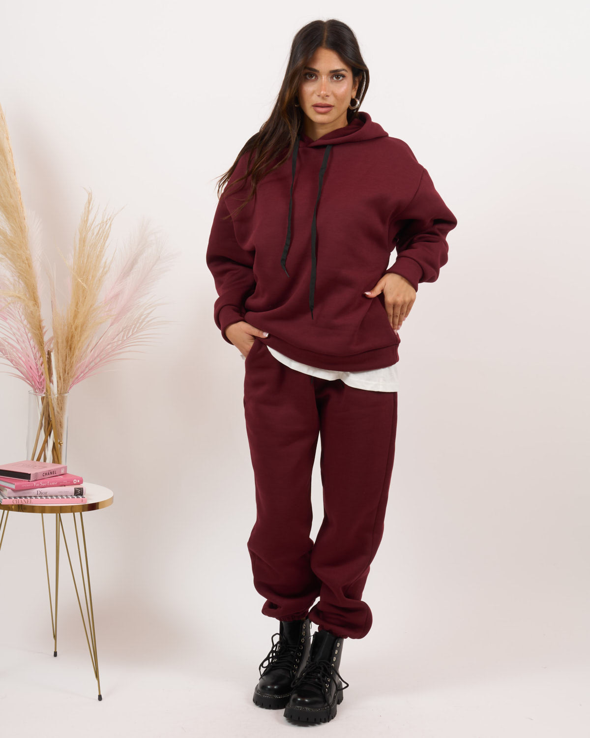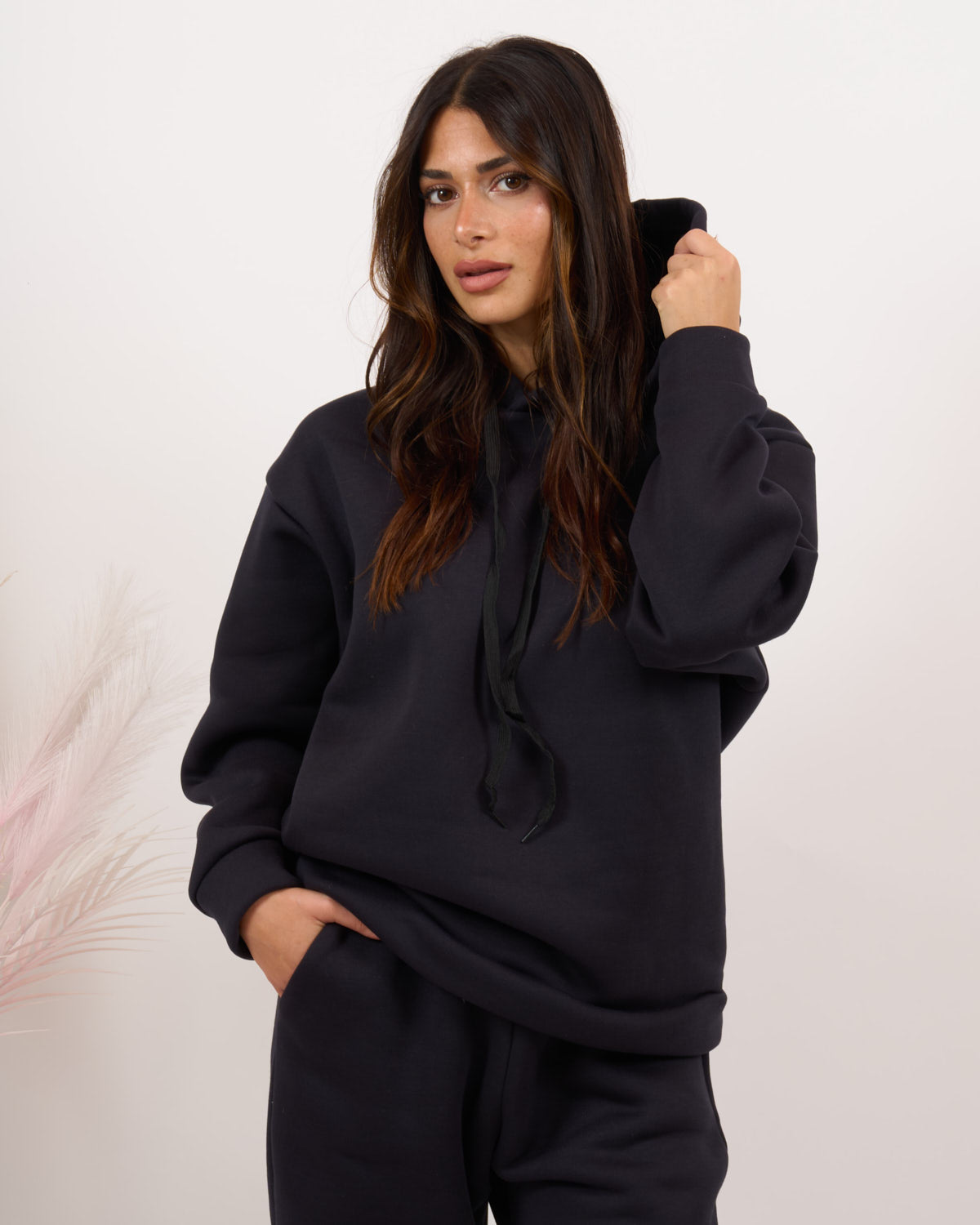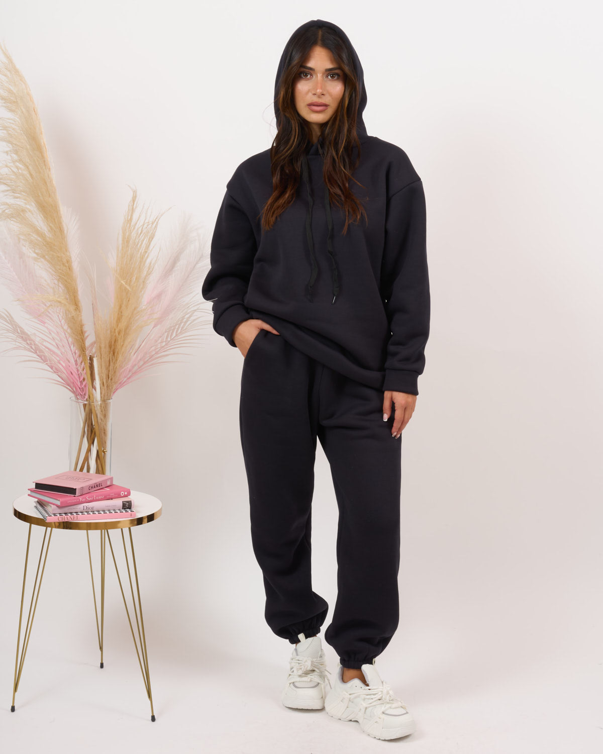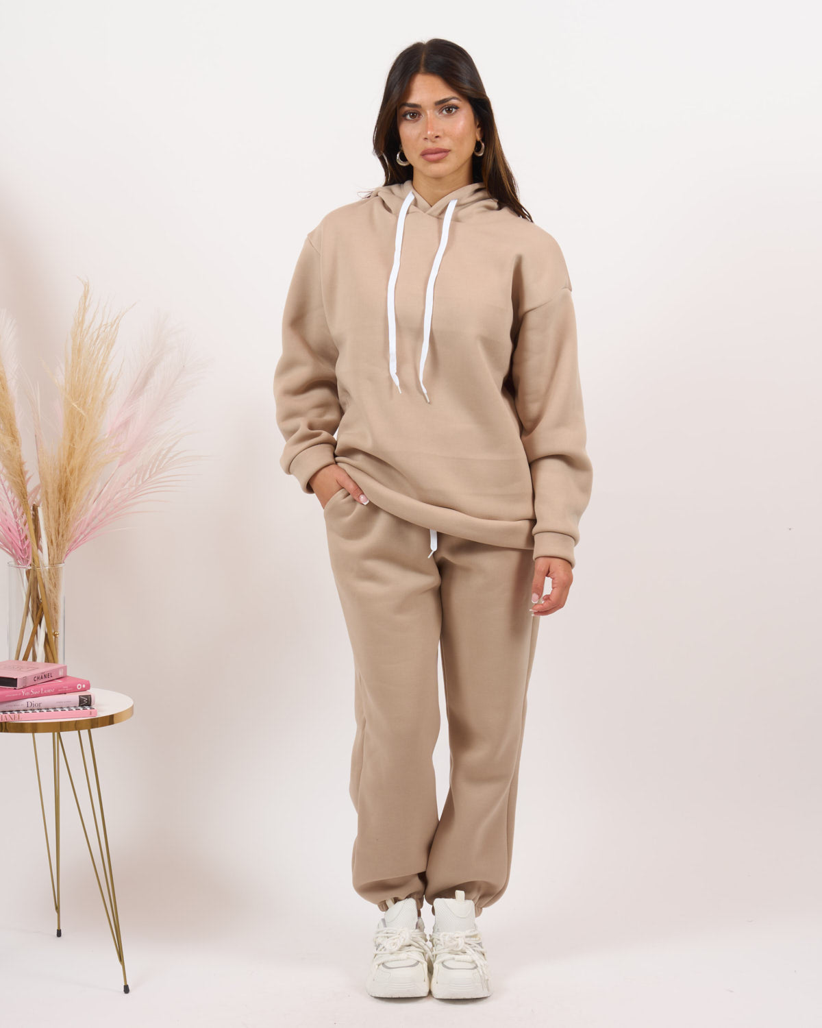 Coordinato di tuta composto da felpone con cappuccio, interno felpato termico.