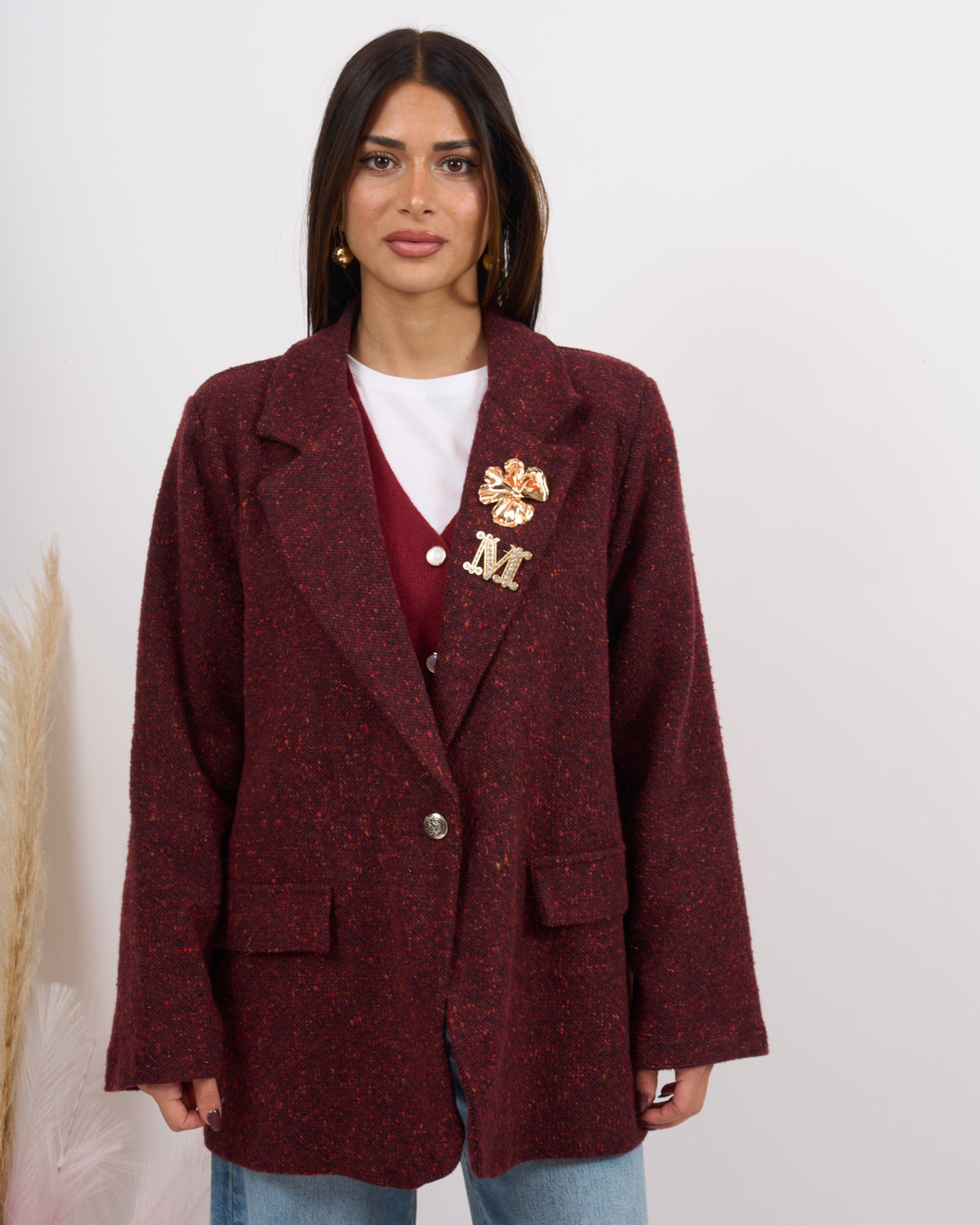 Giacca in tessuto "cappotto" con interno foderato. Spille sul petto removibili.