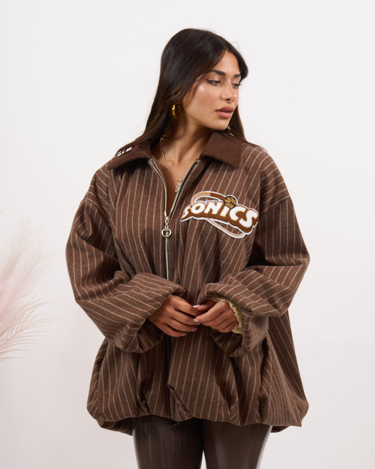 Modello oversize con fondo a palloncino, interno foderato e tasche.