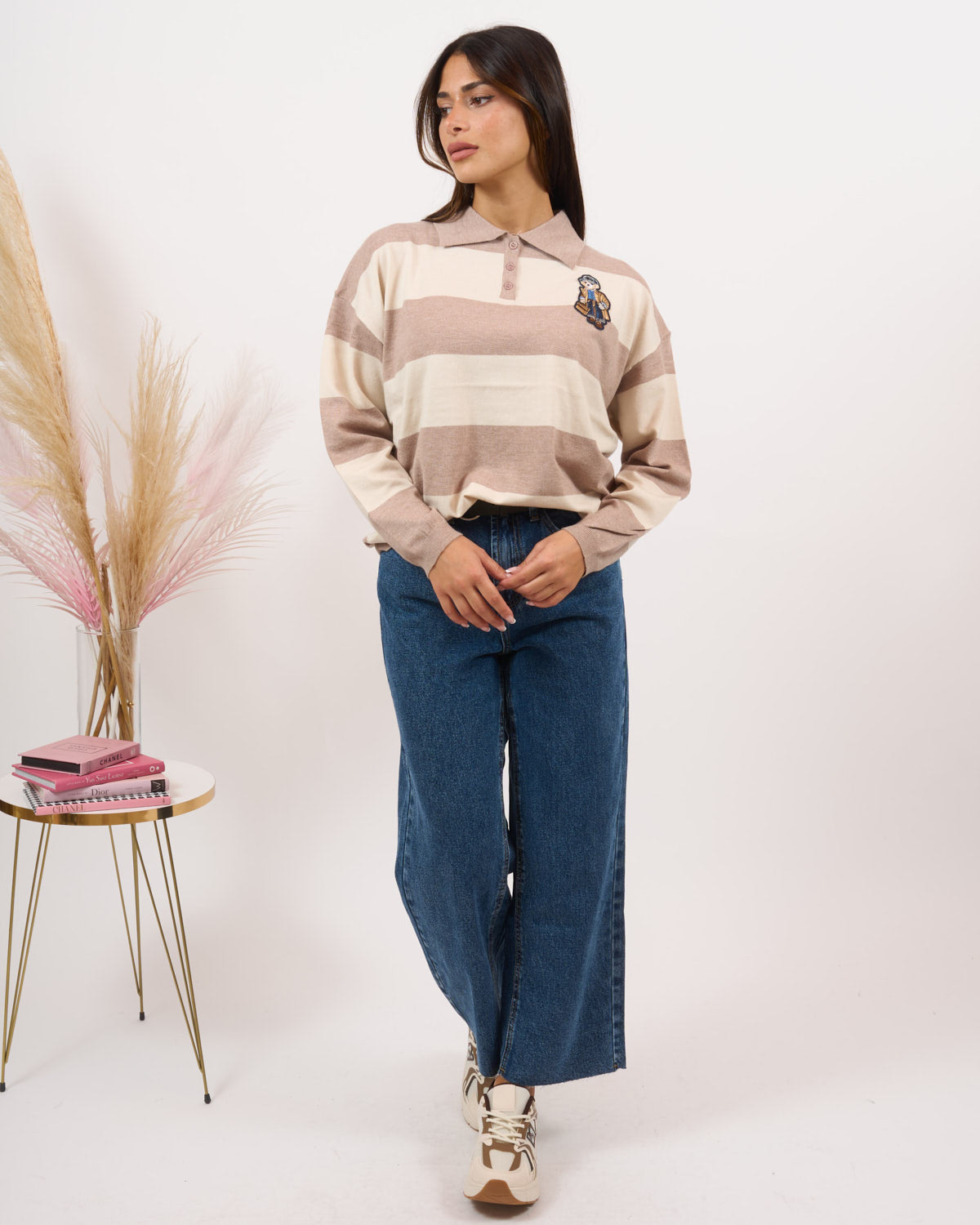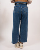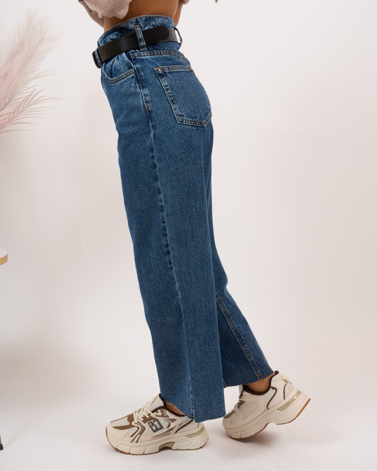 Jeans alta vita con elastico sui fianchi, gamba dritta fino al fondo.