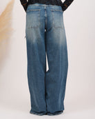 Jeans Wide Leg caratterizzati da dettagli frontali unici. Con vita alta e una vestibilità comoda, questi jeans combinano semplicità e stile distintivo, perfetti per ogni momento della giornata.
