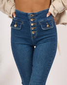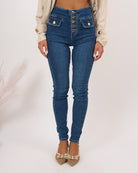 Denim totalmente elasticizzato, vita alta con retro push-up.