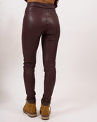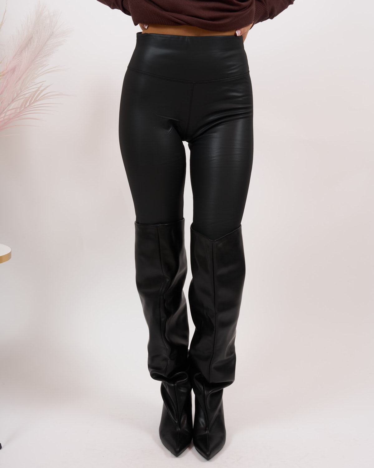 Leggins in ecopelle con interno felpato, alta vita e stretto sul fondo.