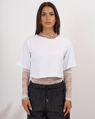 Composto da maglia in cotone sovrapposta ad un body in pizzo.