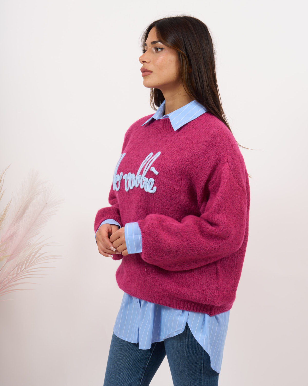 Maglioncino in lana morbida con manica a palloncino elasticizzata.