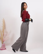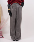 Pantalone in tessuto caldo al tatto, alta vita con chiusura zip ed retro elasticizzato.