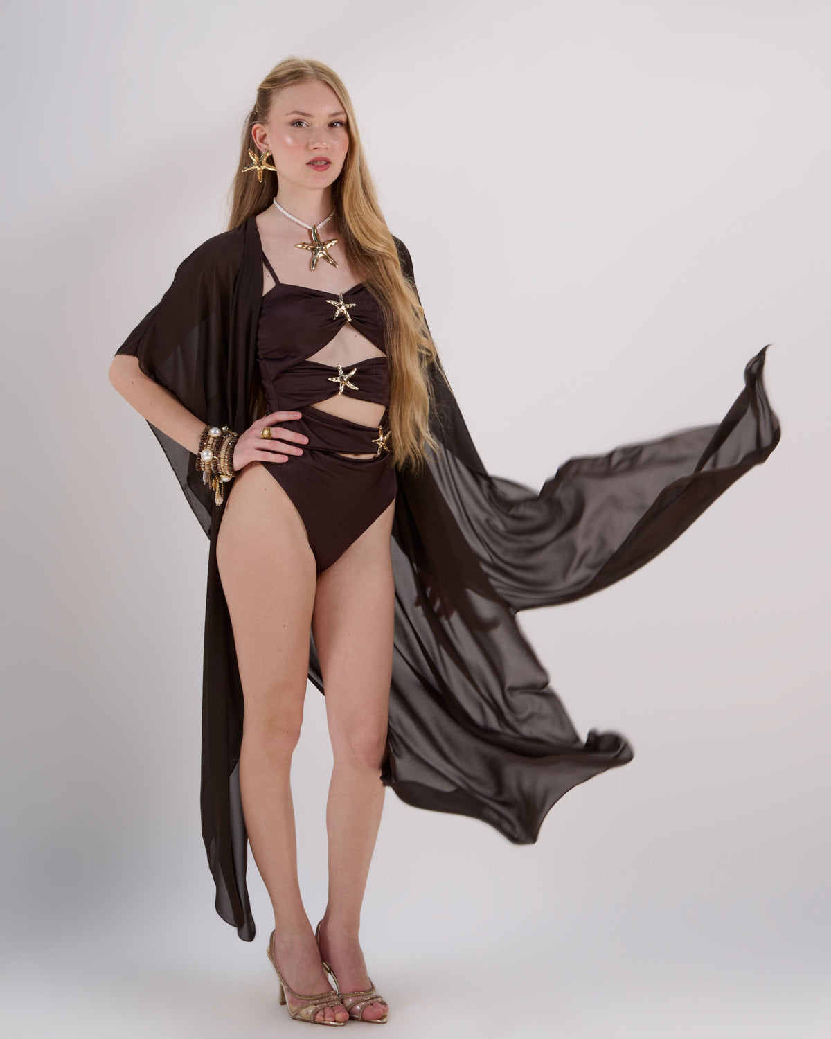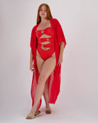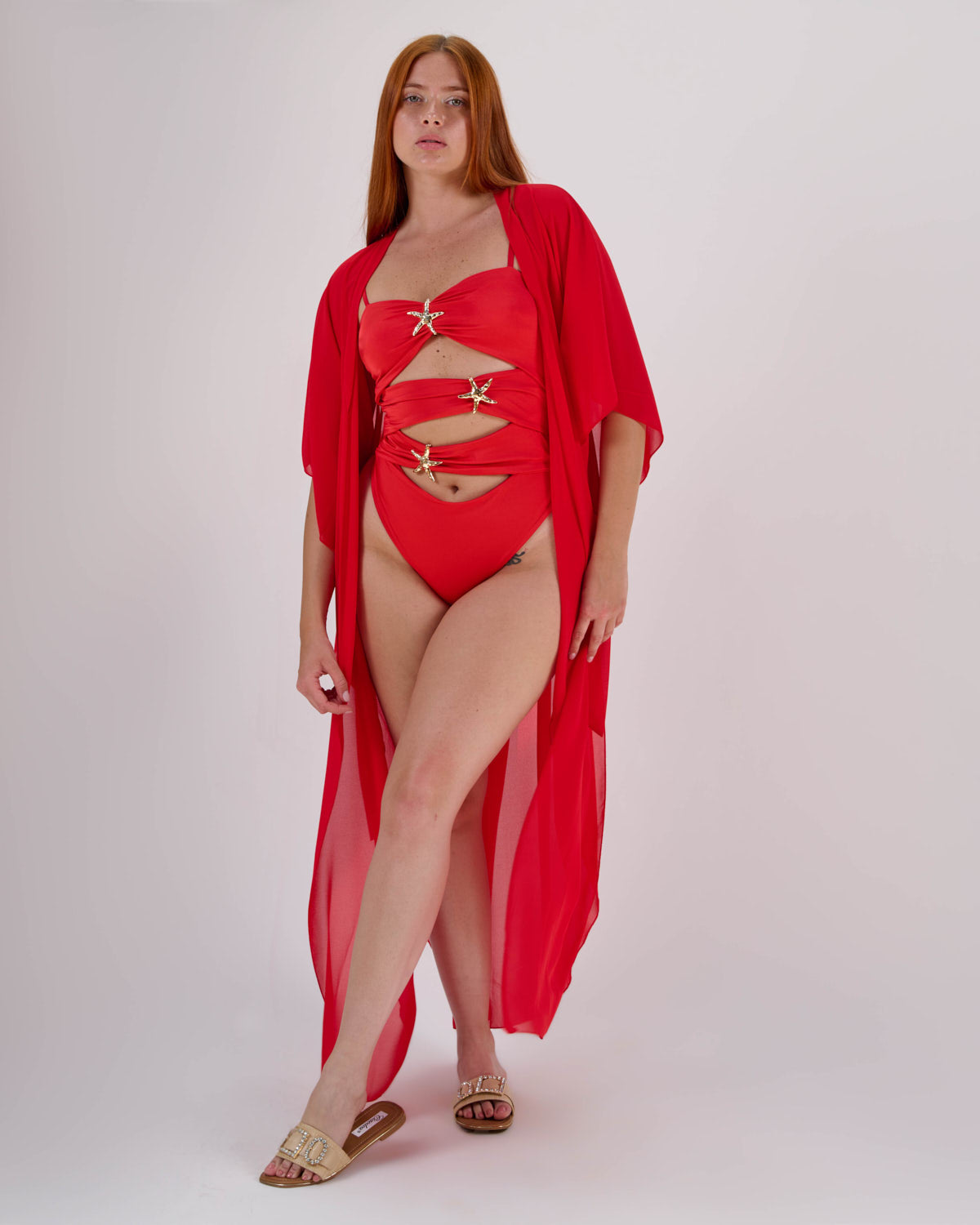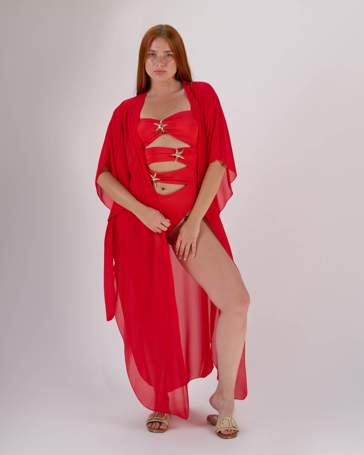 Copricostume di velo in taglia unica veste fino a XL. Con cintura in vita in tessuto.