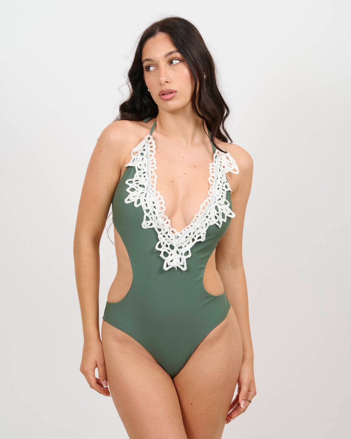 La modella costume bianco indossa XS/40