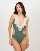 Costume con ricamo sul davanti, retro con lacci regolabili.