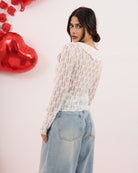 Camicia in merletto con fiocchi regolabili sul davanti.