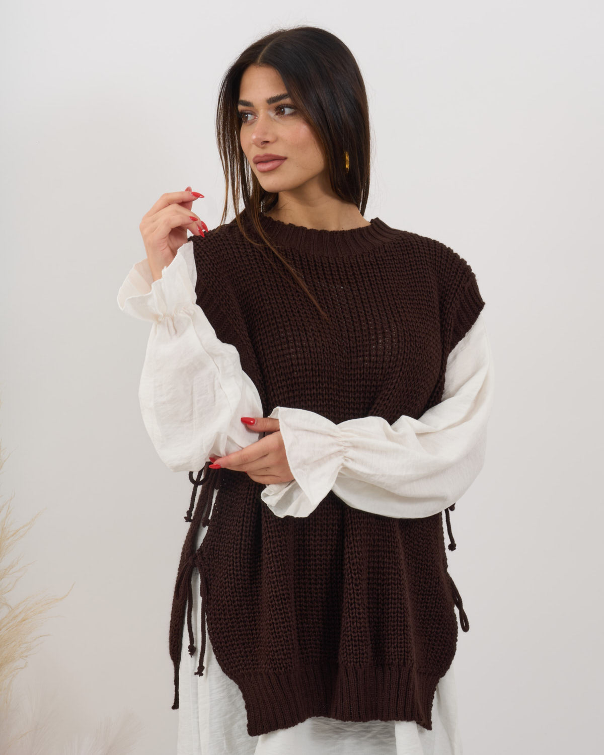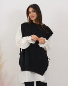 Coordinato 3 pezzi composto da maxi camicione con gilet e pantalone alta vita con elastico.