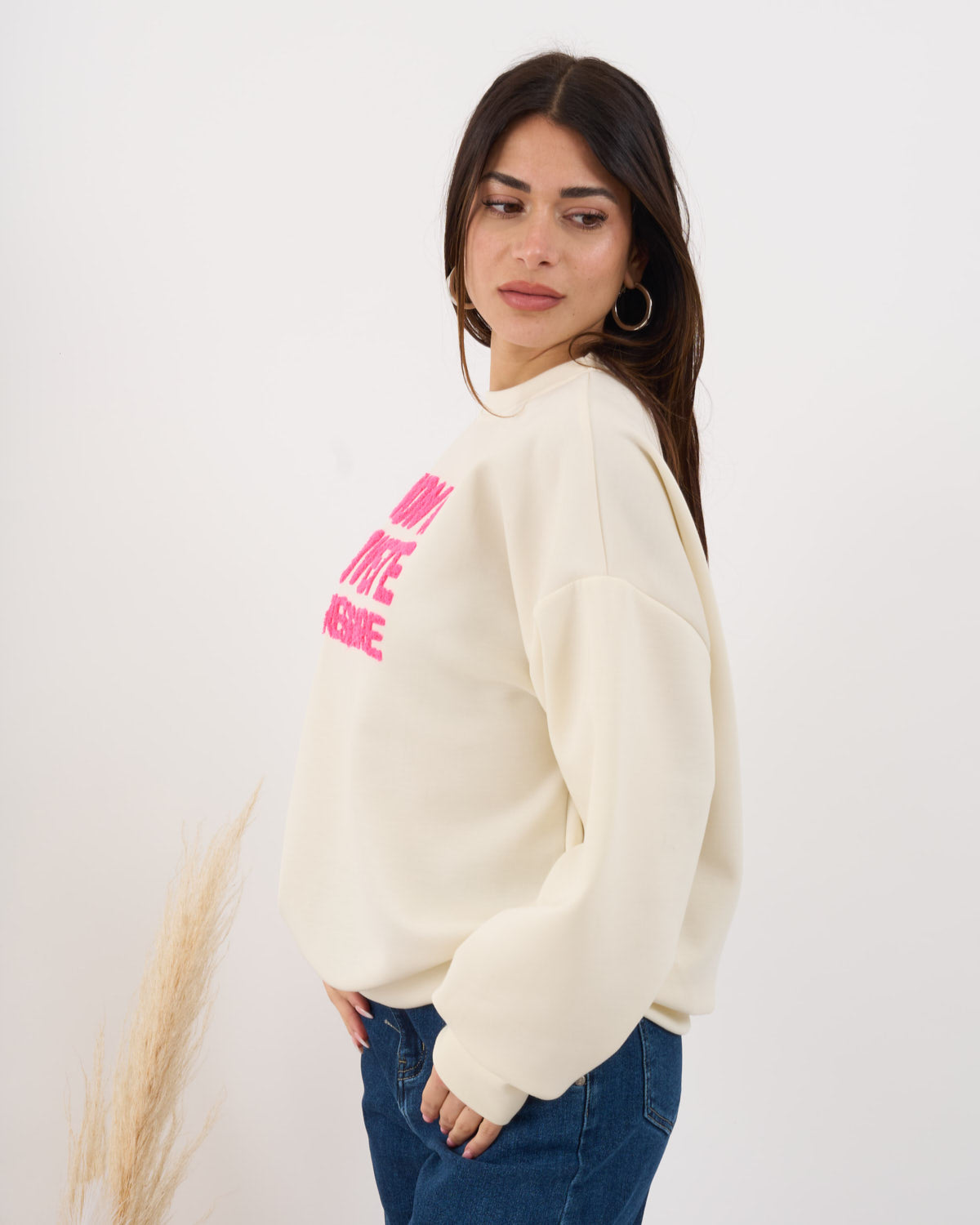 Felpa in viscosa con scritta sul davanti in rilievo.