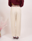 Pantalone con elastico sul retro, chiusura con bottone e zip.