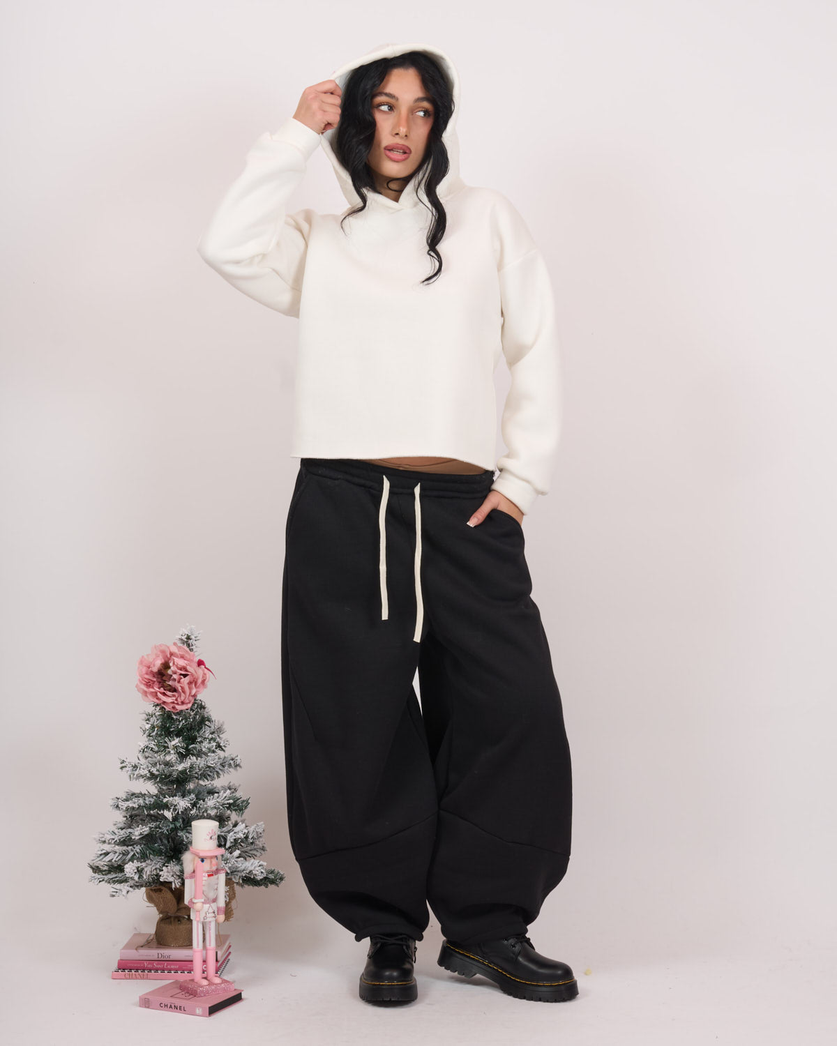 Interno felpato, alta vita elasticizzato con lacci regolabili.