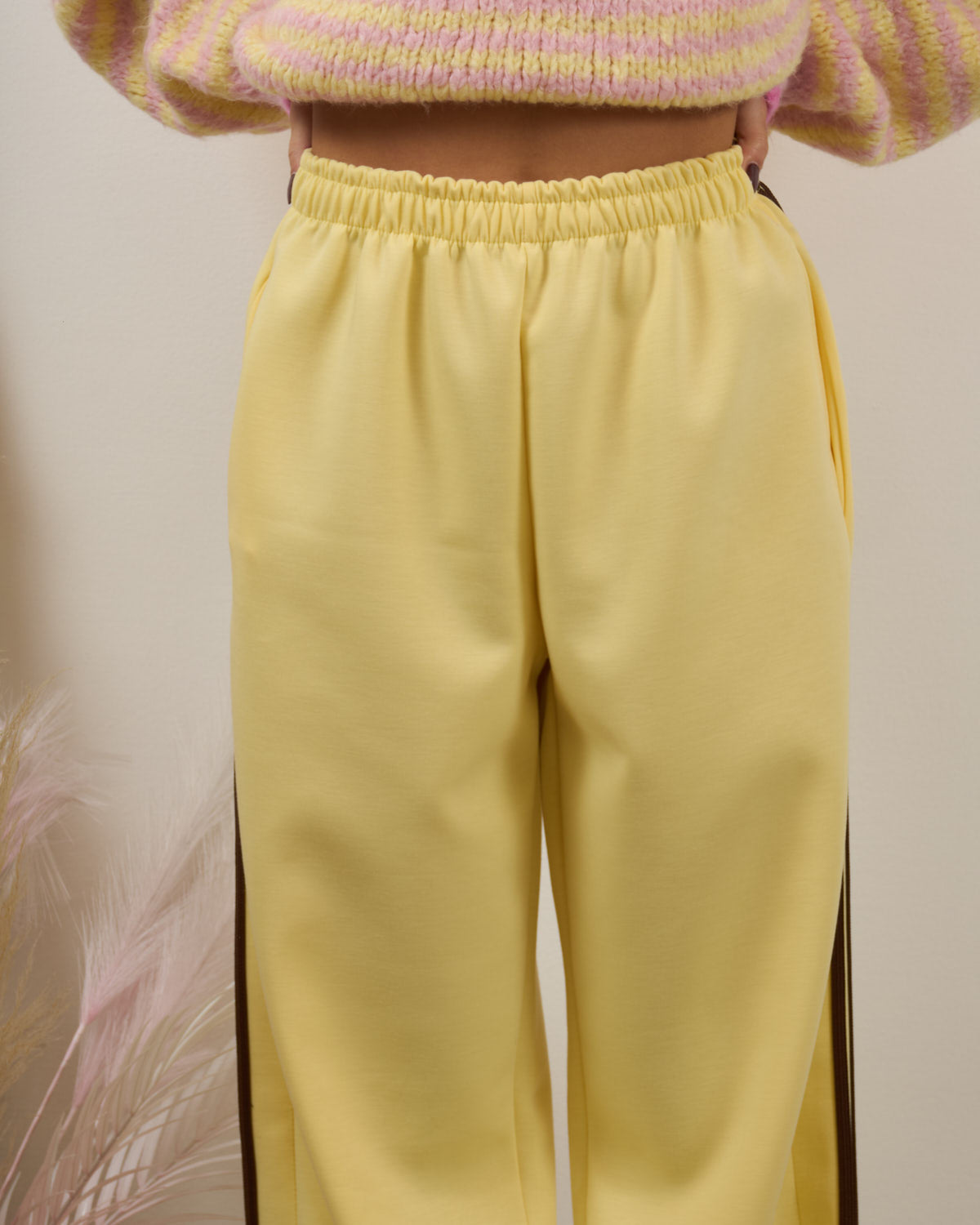 Pantalone tuta alta vita con tasche, elastico in vita e tasche.