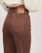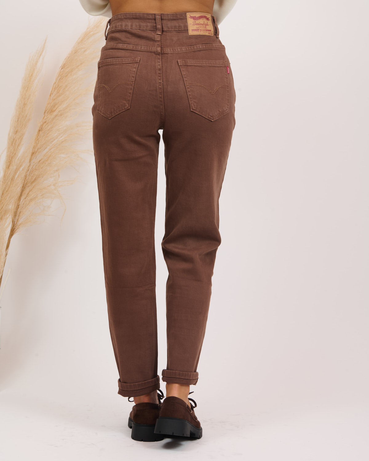 Denim elasticizzato modello mom fit lavaggio marrone, alta vita.