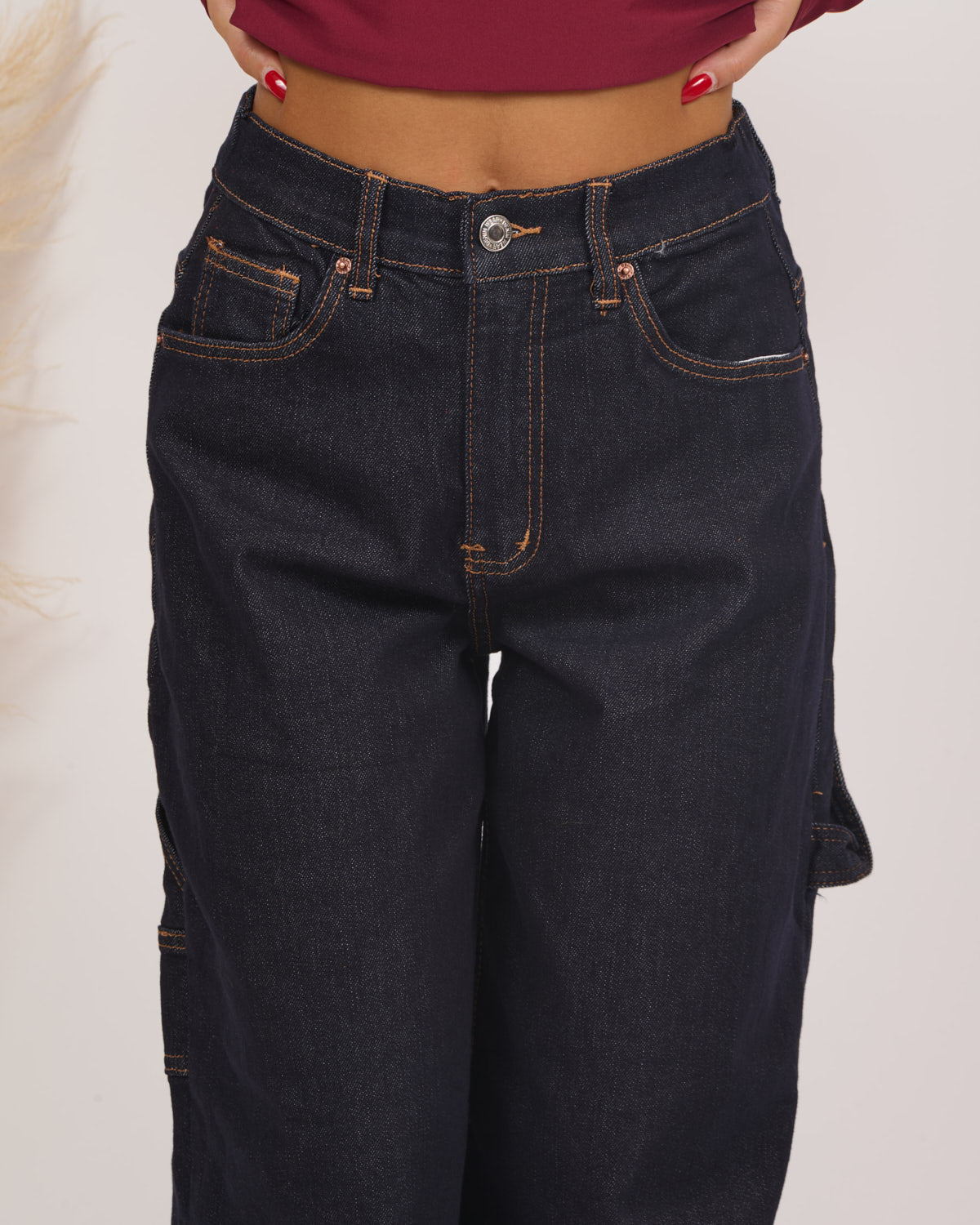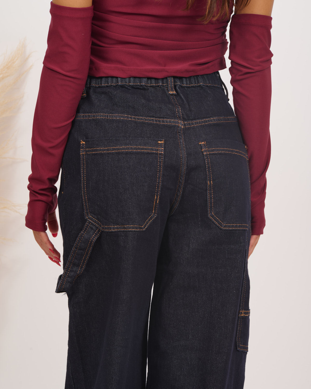 Jeans dal lavaggio scuro, dotati di elastico sul retro per una vestibilità ottimale. Vita alta e comoda, arricchita da tasche sia sul davanti che sul retro. Realizzati con materiali di qualità premium per garantire durata e stile.