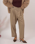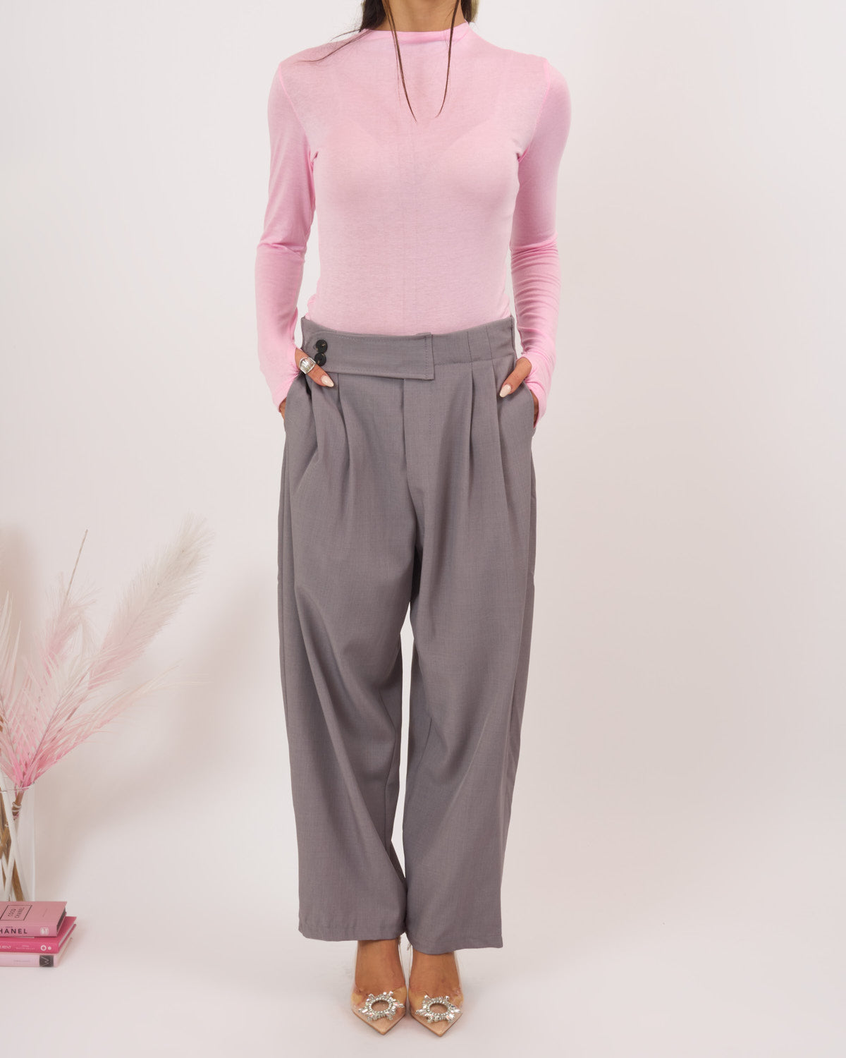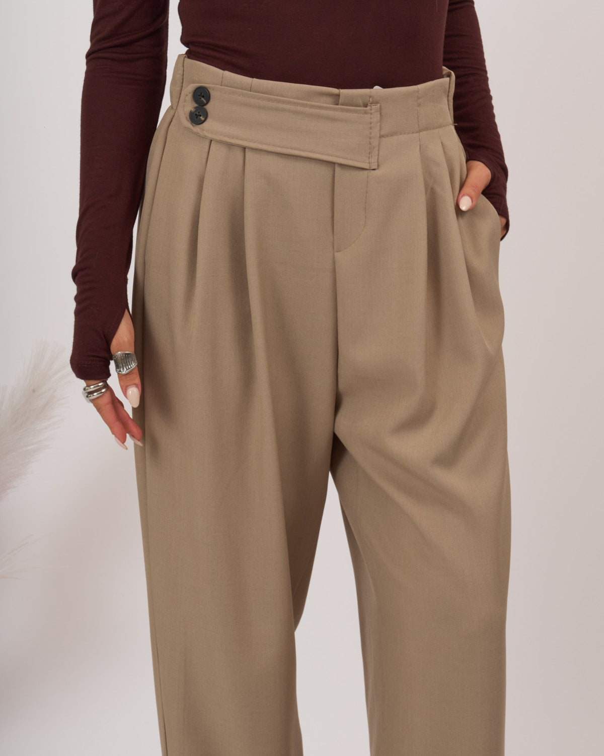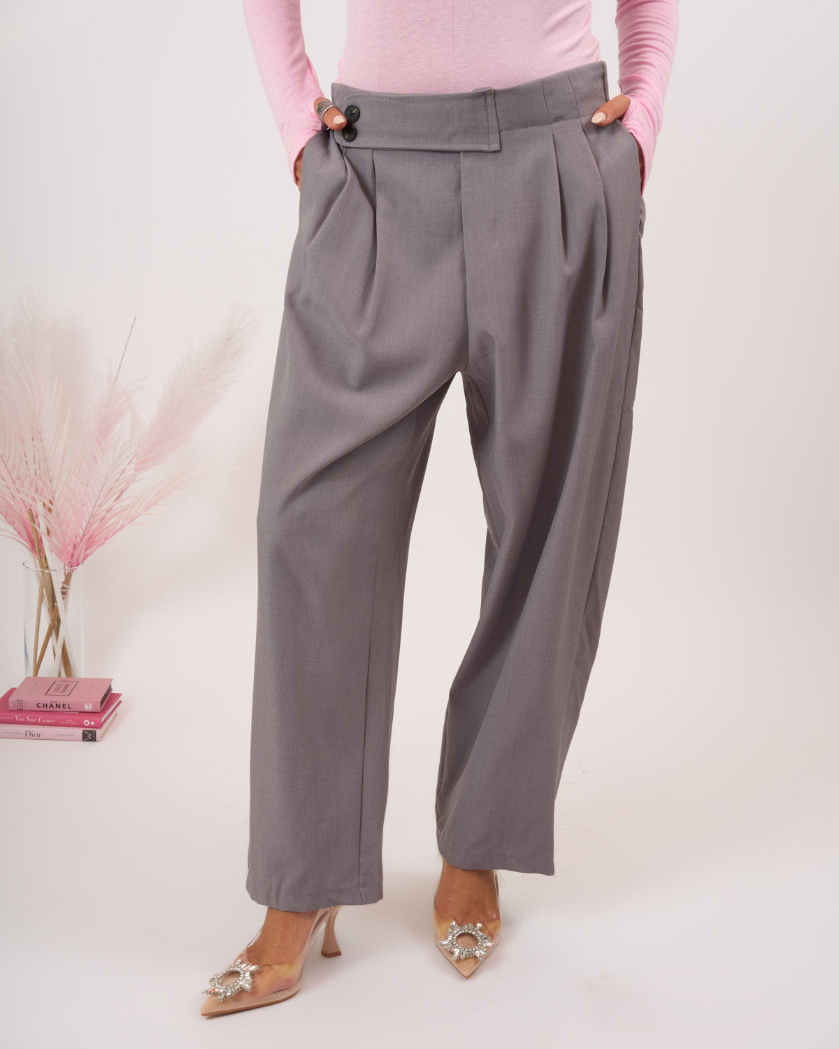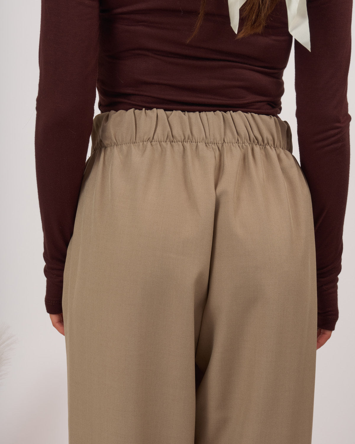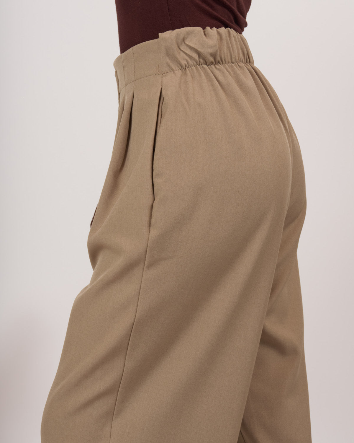 Pantalone modello classico sportivo con alta vita con pinces sul davanti e retro elasticizzato.