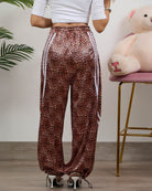 Alta vita con tasche, tessuto lucido al tatto effetto raso.