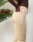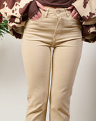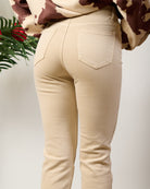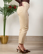 Pantalone elasticizzato alta vita con gamba stretta al fondo.