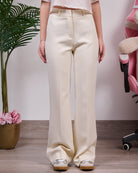 Alta vita con chiusura zip e bottone in tono, senza tasche.