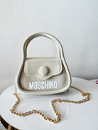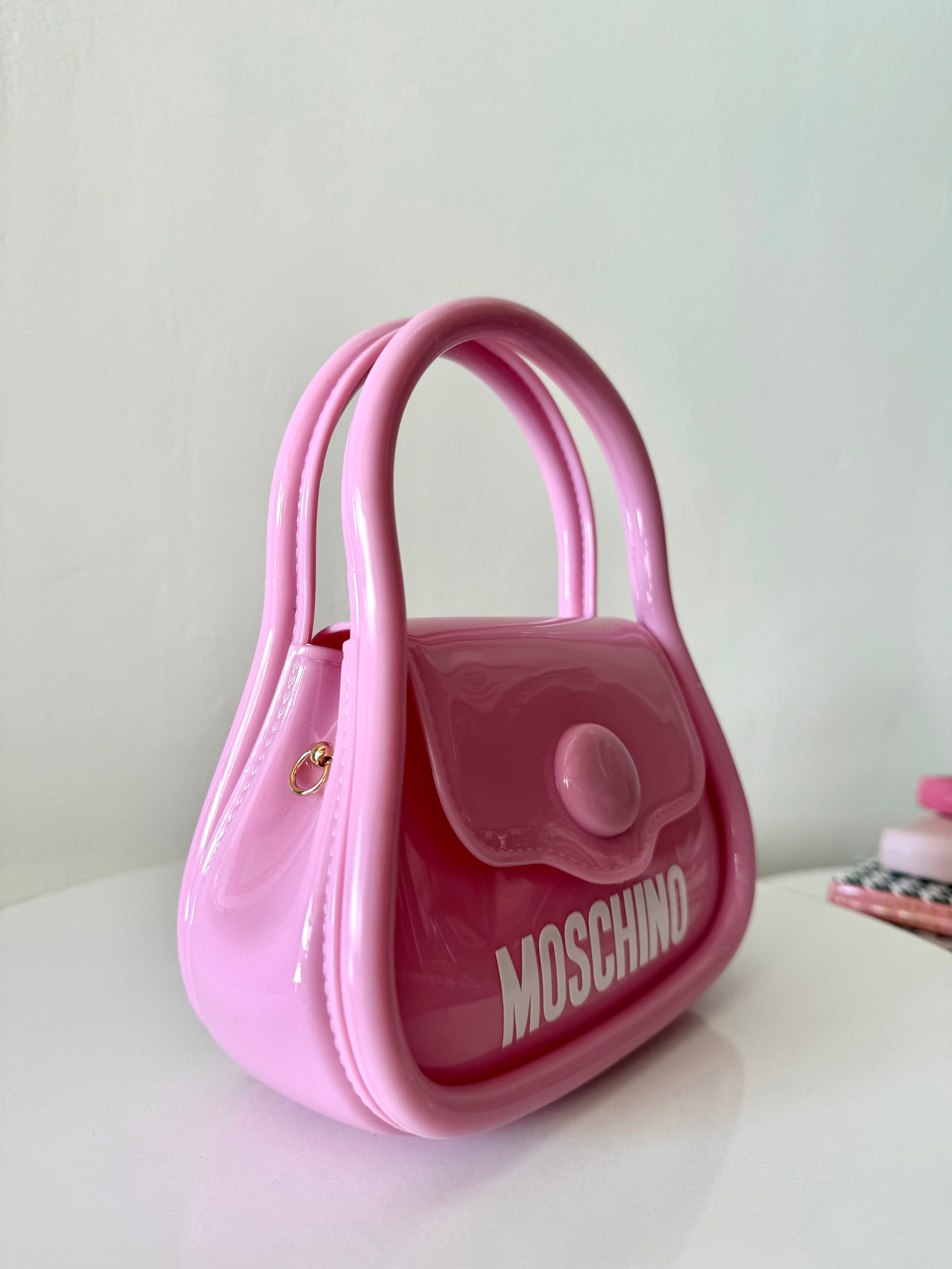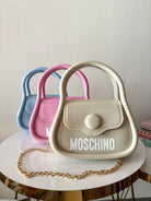 Mini bag in plastica, tracolla a spalla in catena inclusa.
